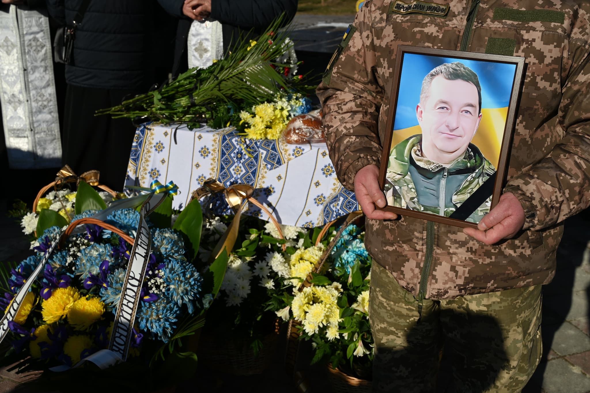 На колінах та з прапорами: на Тернопільщині в останню дорогу провели Героя Володимира Волинця (фото)