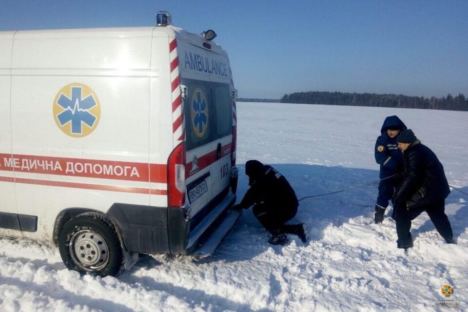 На Кременеччині зі снігу визволяли швидку (фото)
