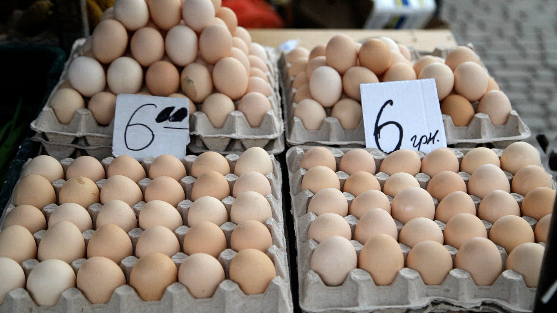 Також купують печений хлібець – 280 гривень за кілограм та м’ясні рулети – 400 гривень. Придбати на ринку можна й домашній сир – близько 85 гривень за кілограм, масло – в середньому 400 гривень за кілограм. Не обійдеться великодній кошик і без яєць. Фермерські по 5–6 гривень, домашні – 6-7. Хрін можна придбати від 10 до 25 гривень за штуку.