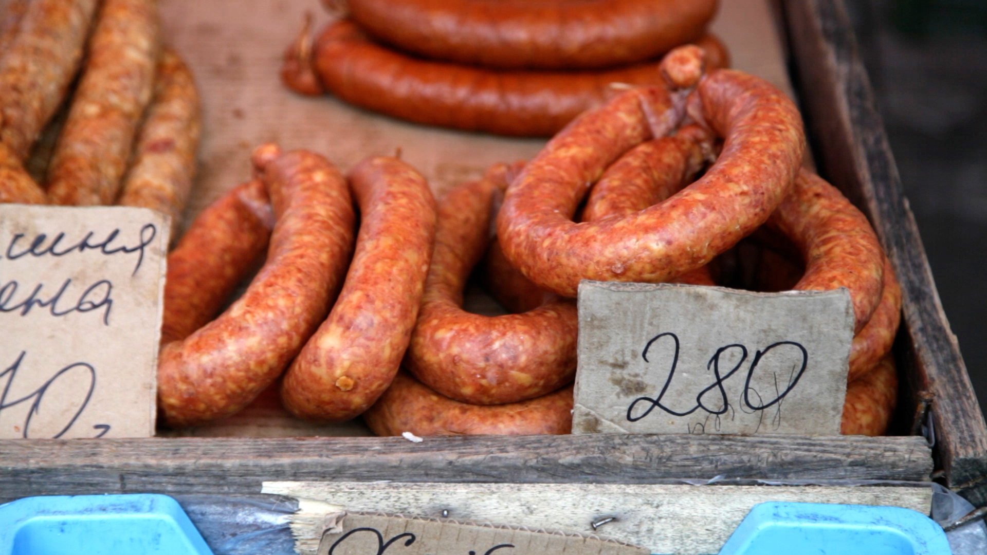 Як бачили журналісти Терену, особливо багато покупців у м'ясному відділі. Найбільше купують домашню шинку та ковбасу, вибір чималий. Зокрема, копчену шинку можна придбати по 450 гривень за кілограм, печена обійдеться дешевше – 350 гривень. Домашня ковбаса коштує в середньому 280-370 гривень за кільце, печена на дровах — близько 350 гривень.