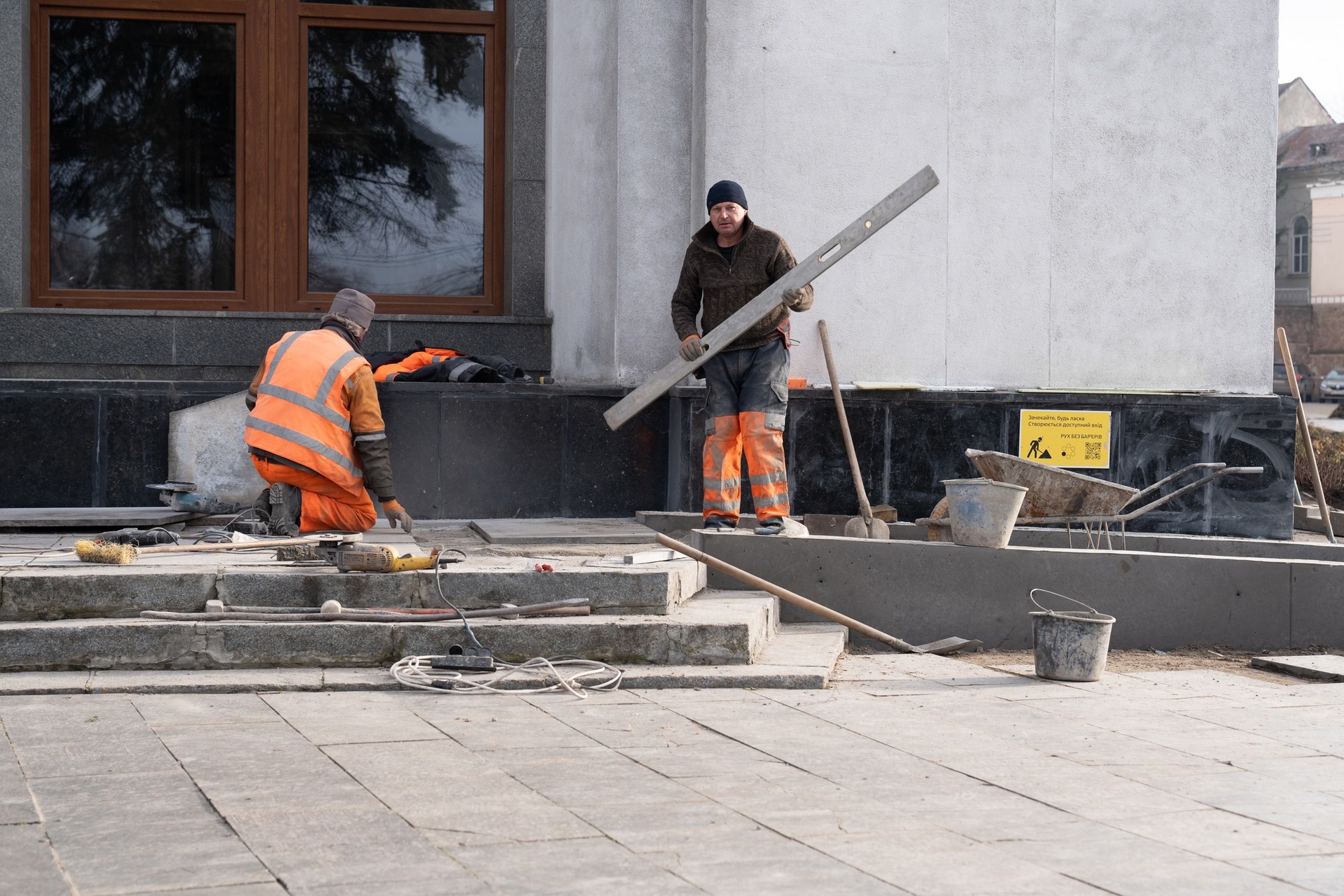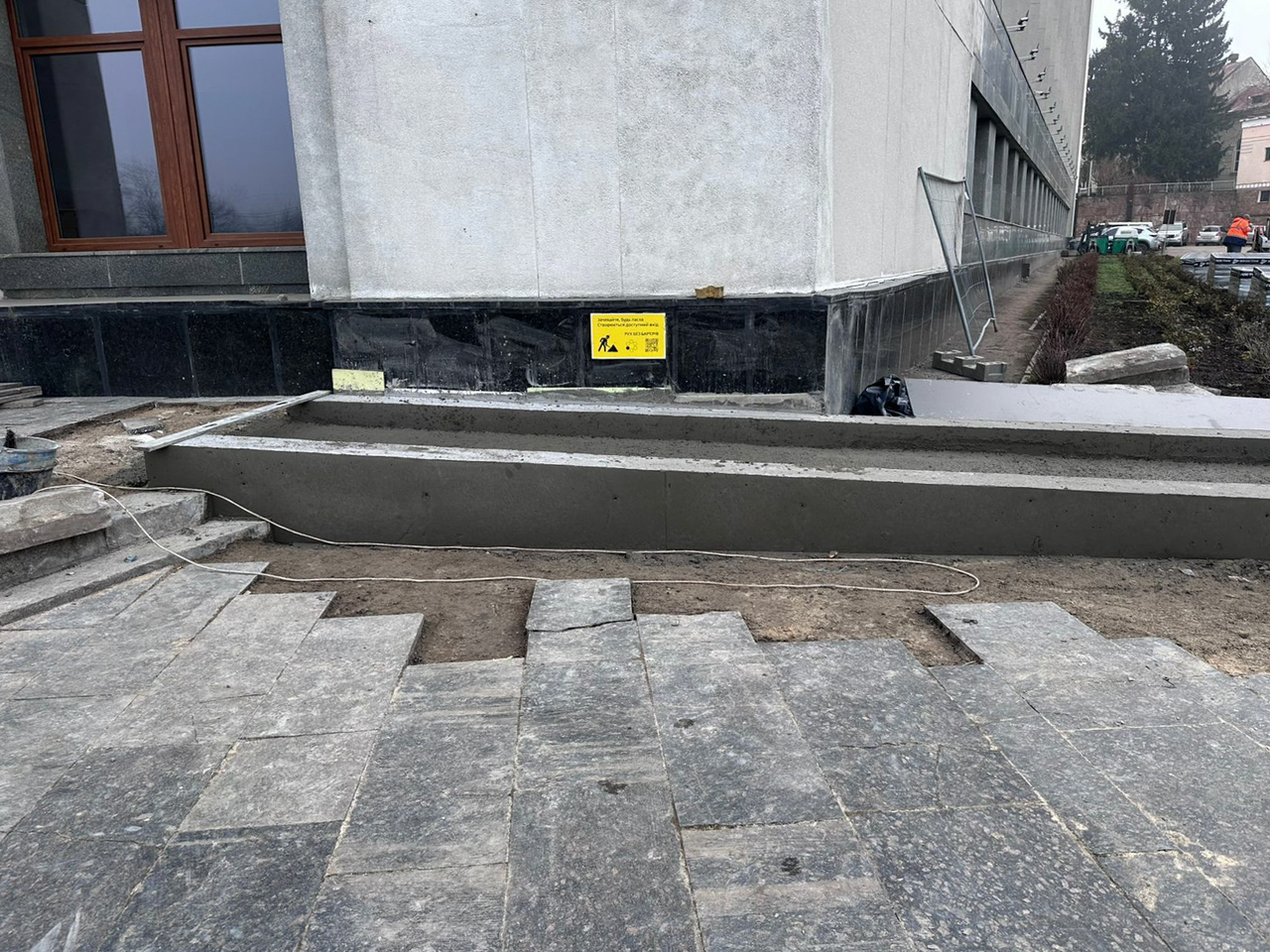 На території будівлі Тернопільської облради тривають підготовчі роботи з облаштування безбар'єрних маршрутів (фото)