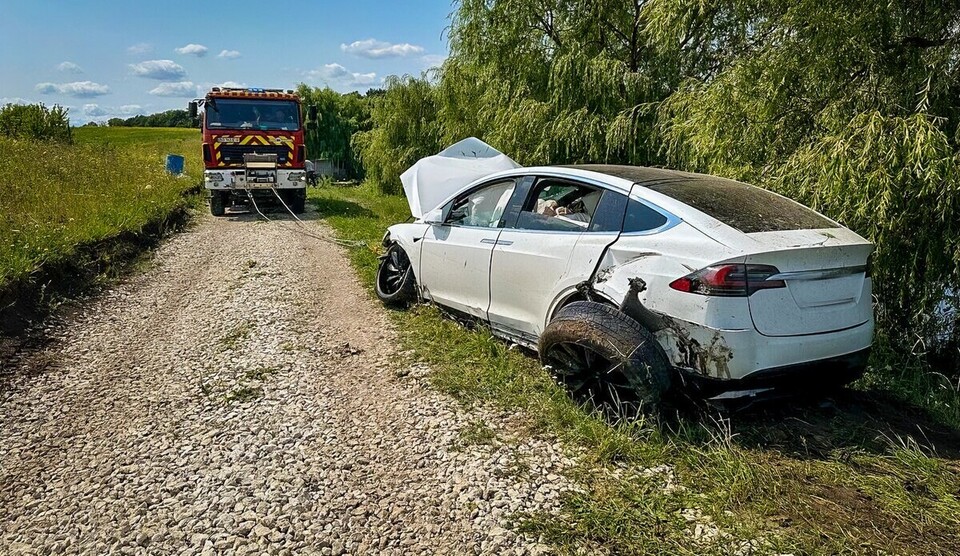 На Тернопільщині автомобіль Tesla злетів у ставок