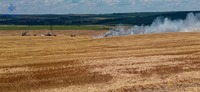 Внаслідок пожежі знищено: моторний відсік, передні колеса, кабіну та жатку комбайна, а також 2,5 га післяжнивних залишків (стерня)