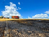 Внаслідок пожежі знищено: моторний відсік, передні колеса, кабіну та жатку комбайна, а також 2,5 га післяжнивних залишків (стерня).