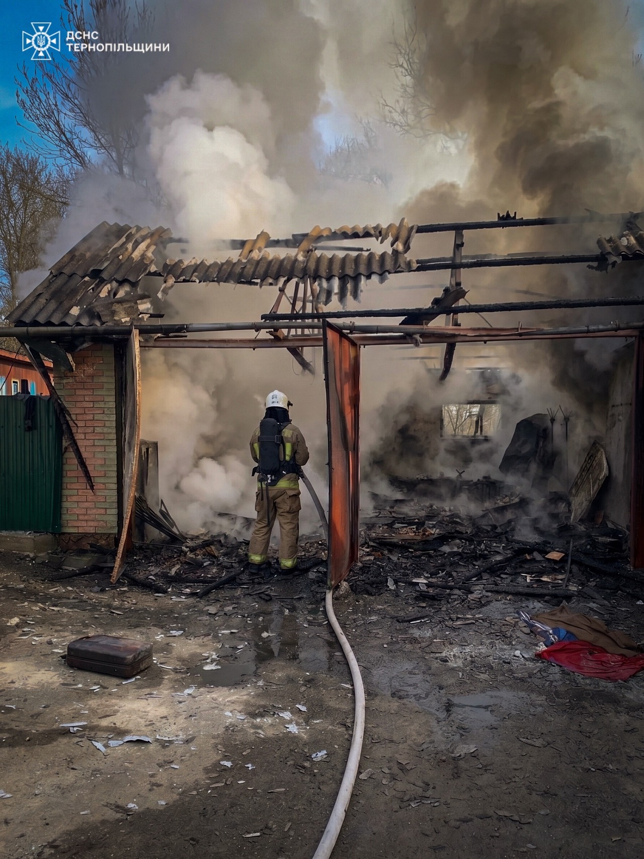 Окрім цього, в області зафіксували пожежі у житловому секторі. Зокрема, у селі Башуки Кременецького району горіла господарська будівля площею 49 кв. м — знищено покриття, перекриття та майно, однак рятувальники не допустили поширення вогню на сусідні об’єкти.