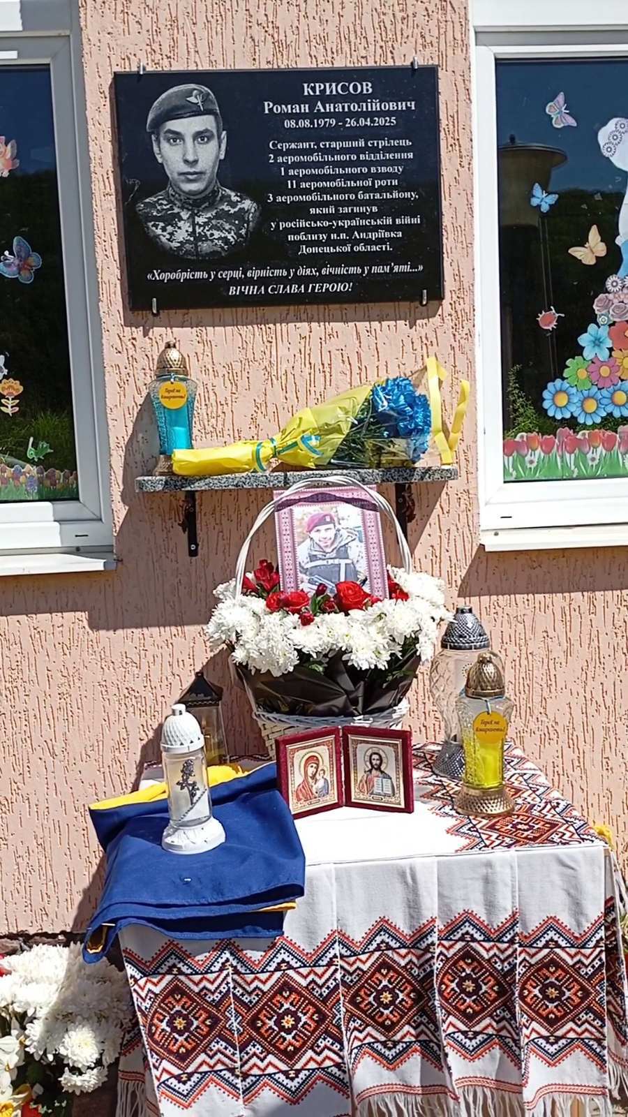 Меморіальну дошку загиблому Герою Роману Крисову відкрили в селі Устечко 27 квітня, повідомляють у пресслужбі Товстенської громади.