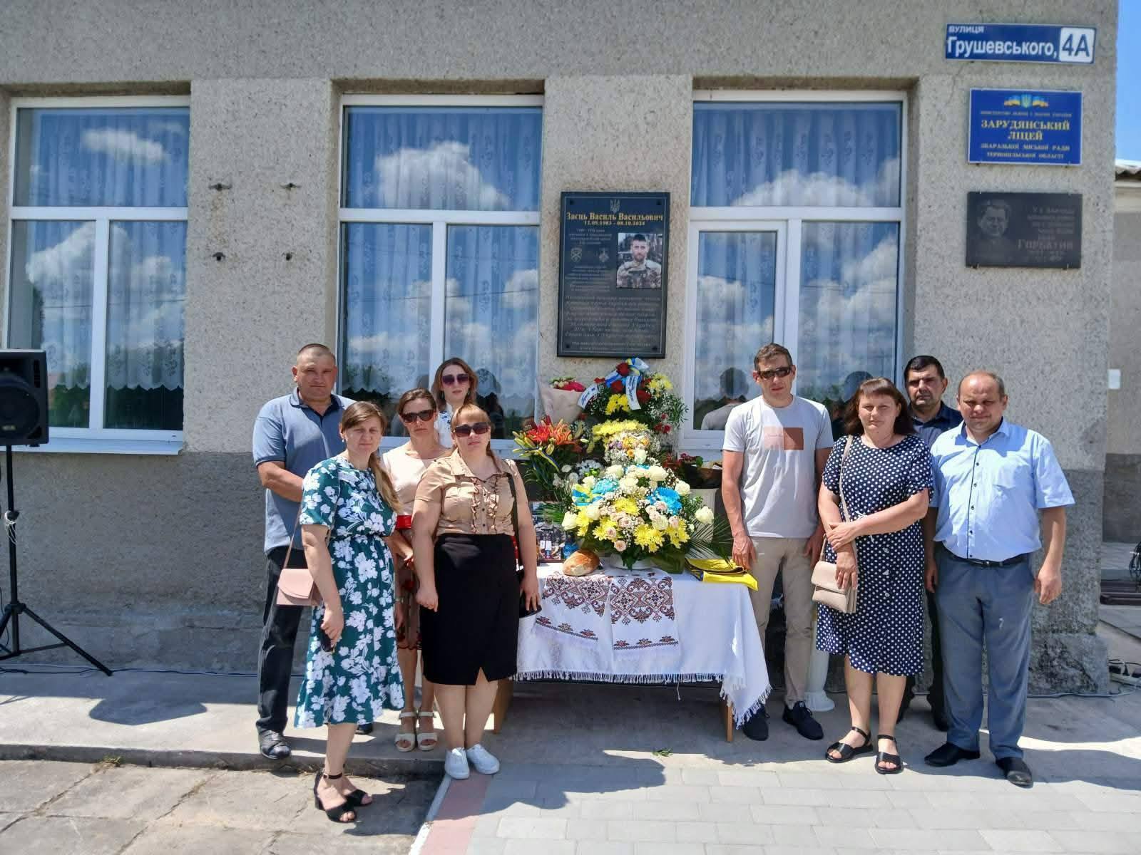 Пам'ятну дошку, присвячену загиблому воїну Василю Зайцю, відкрили 13 липня у Зарудді, повідомляють у пресслужбі Збаразької громади.
