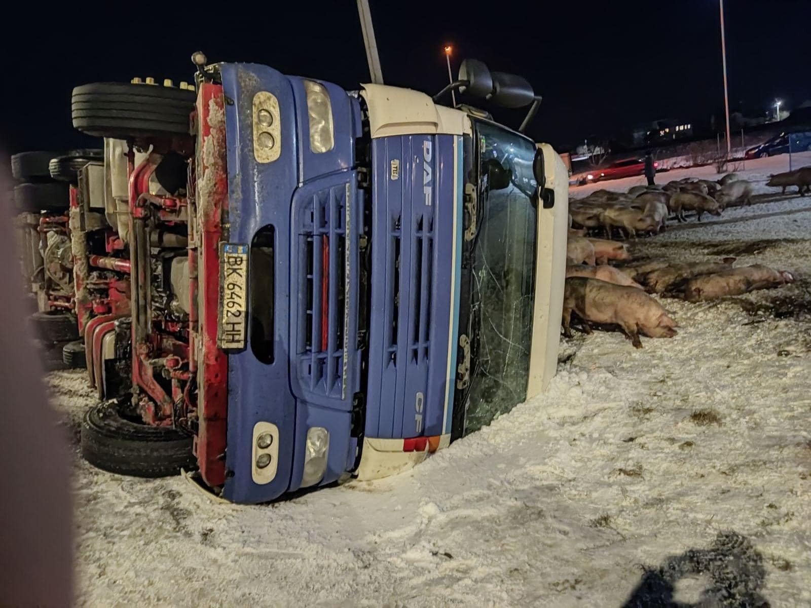 У Кременці перекинулася вантажівка, яка перевозила кілька сотень свиней, десятки з них загинули.