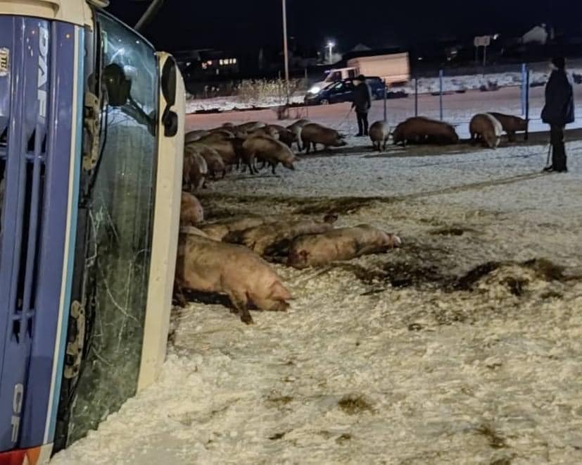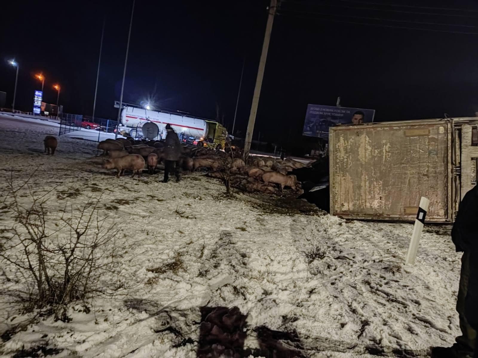 У повідомленні йдеться, що у вантажівці було близько 200 свиней. Як стверджують очевидці, під час ДТП 40 свиней загинули. Частина з них розбрелася довколишньою територією.