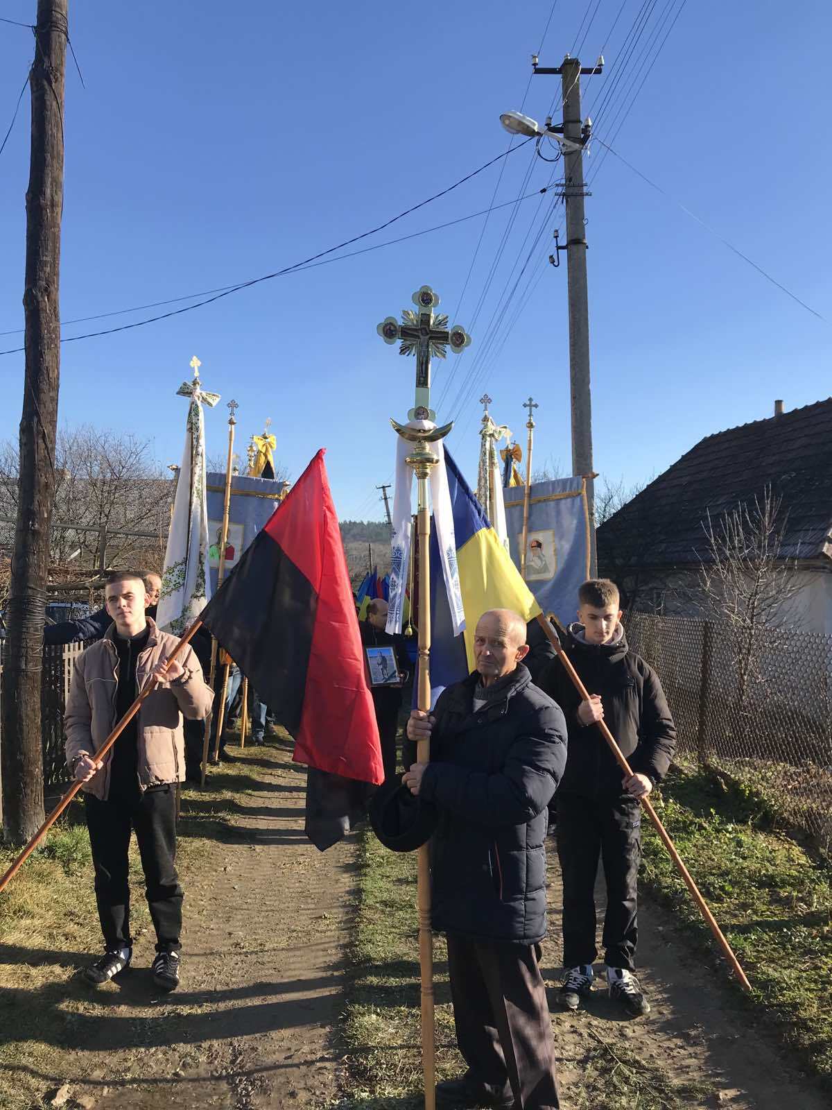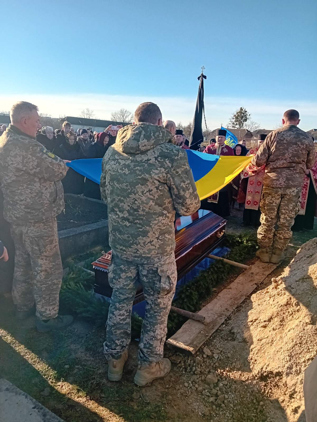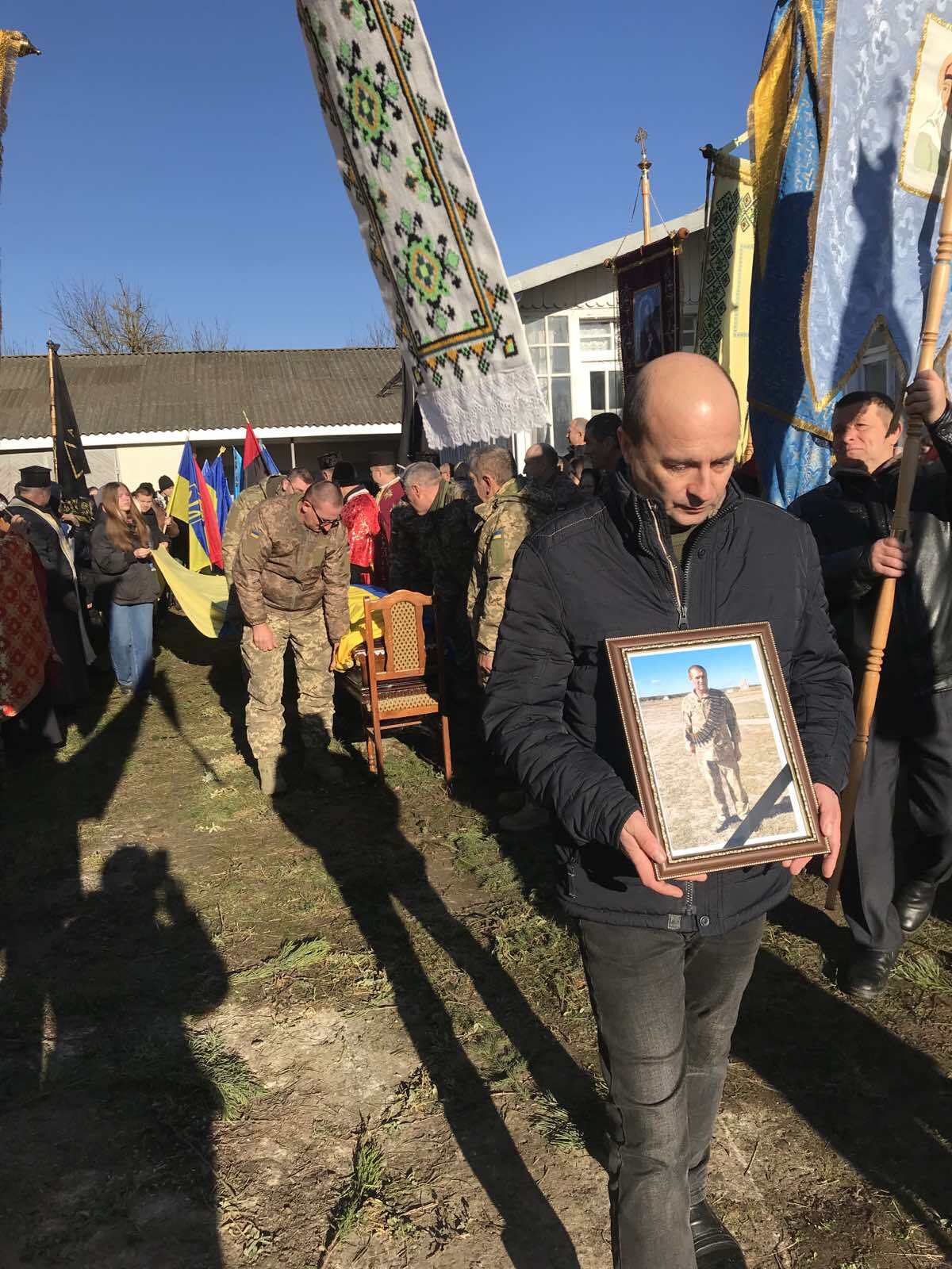 Під супровід оркестру жалобна процесія пройшла вздовж села до місцевої церкви, де священнослужителі відправили заупокійну панахиду, а опісля - до місцевого кладовища, де востаннє Герою віддали військові почесті. Рідним загиблого вручили прапор та Грамоту пошани і скорботи.