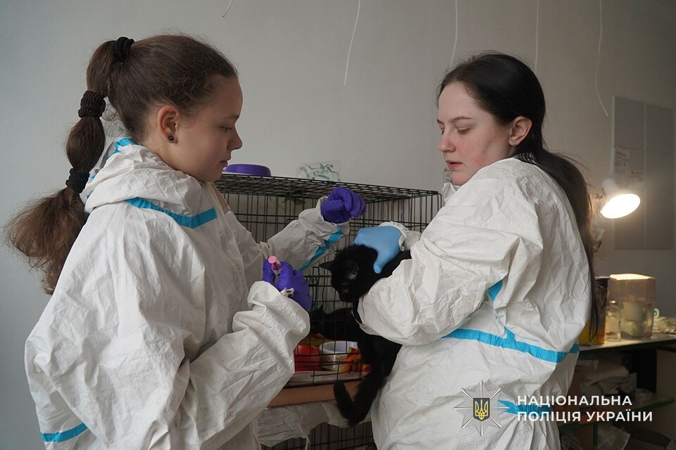 Підійшовши до будинку, поліцейські почули зсередини крики жінки з проханням допомогти їй та домашнім улюбленцям – собаці й кільком котам.