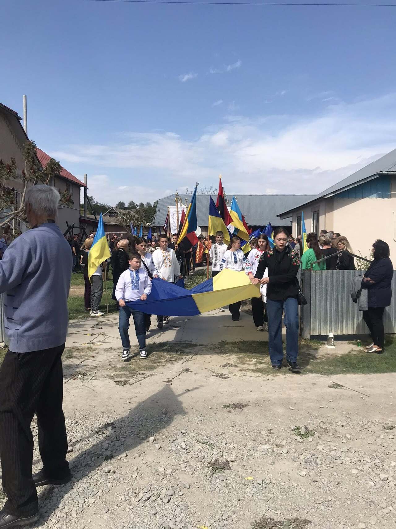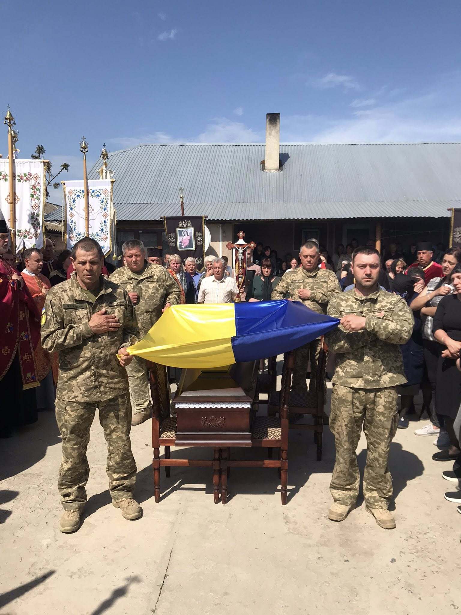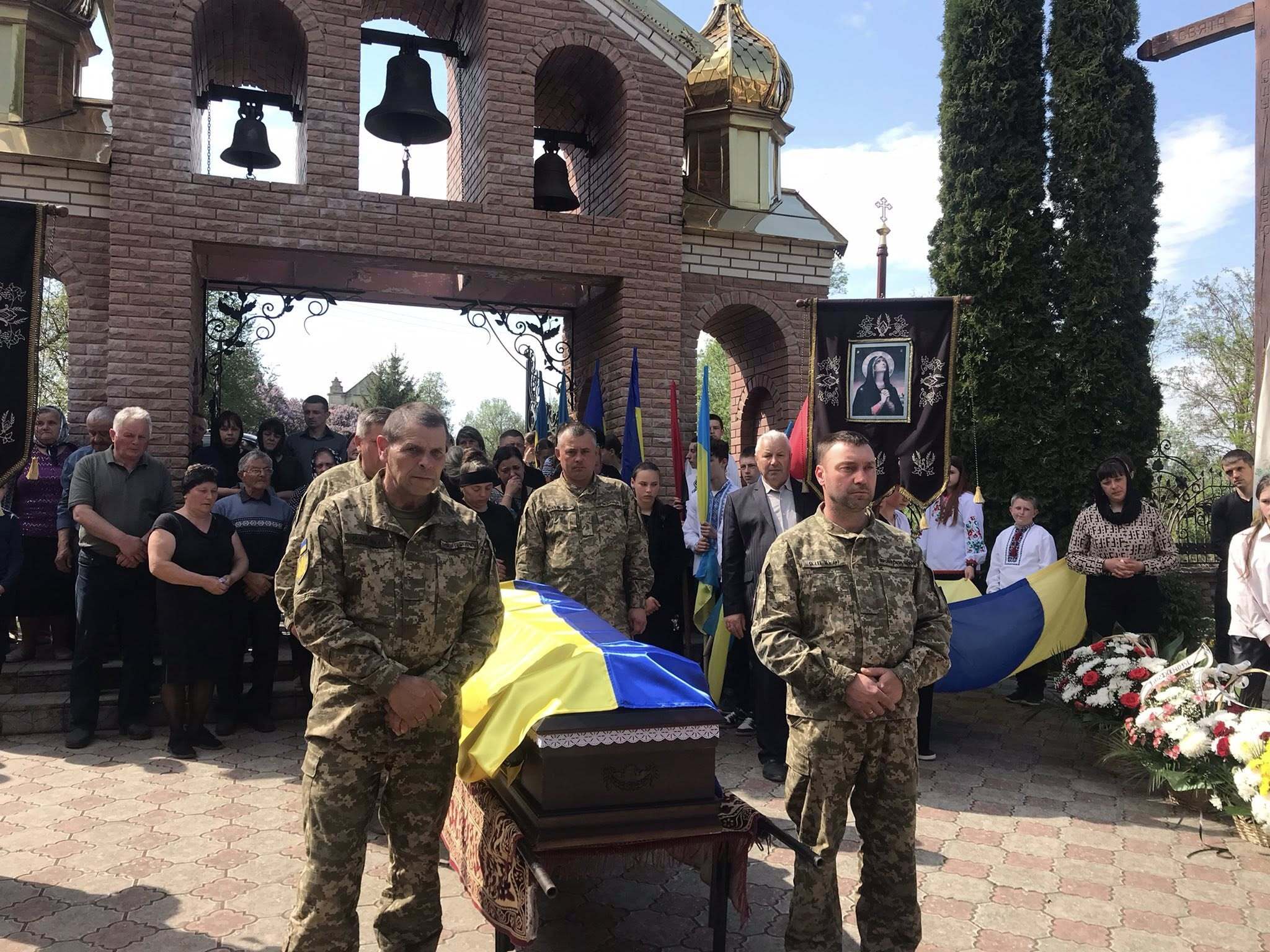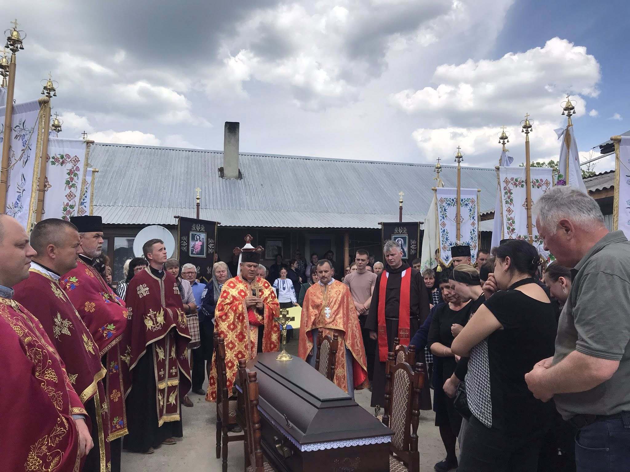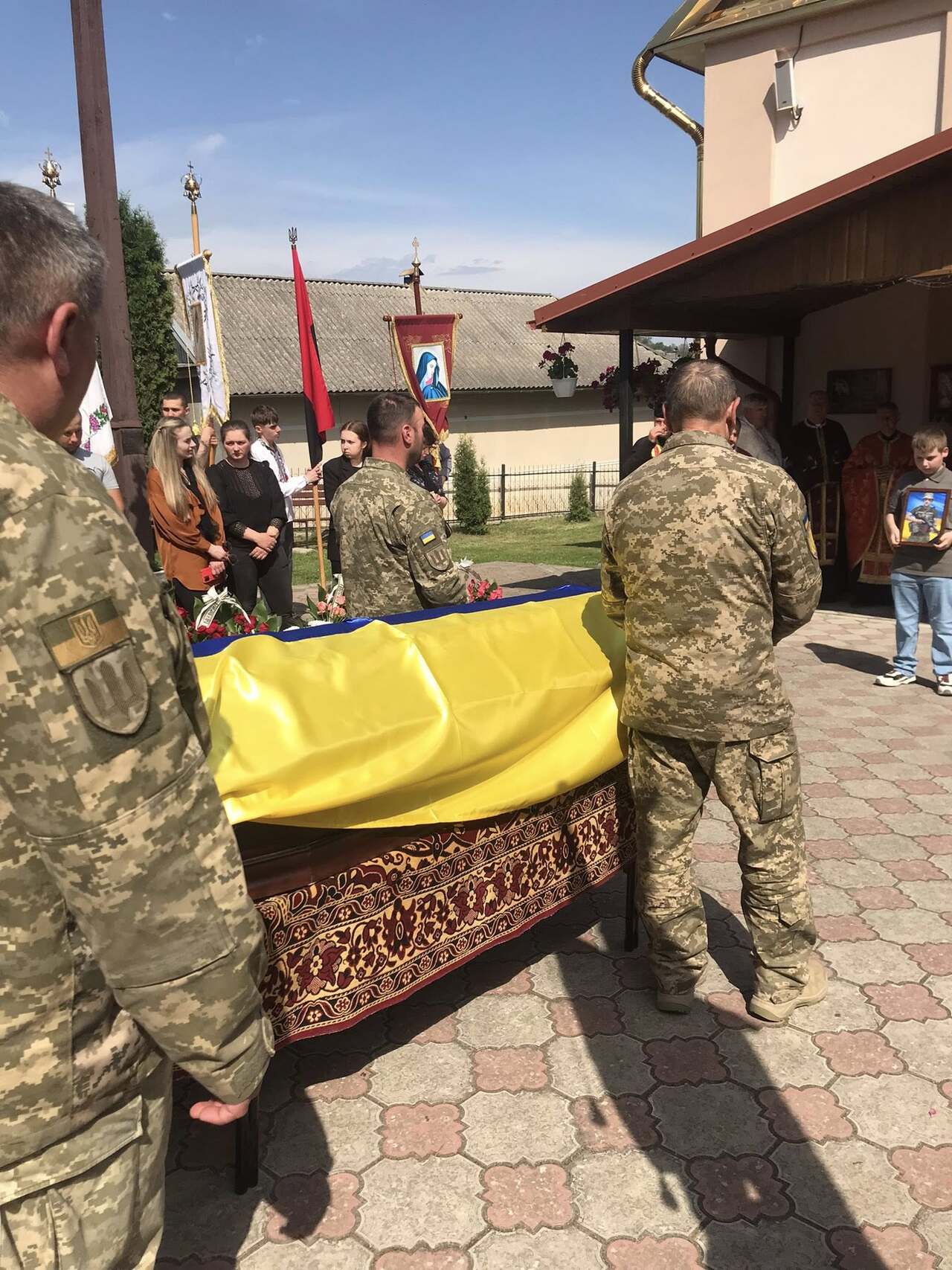 Під супровід оркестру жалобна процесія пройшла вздовж села до місцевої церкви, де священнослужителі відправили заупокійну панахиду, а опісля - до місцевого кладовища, де востаннє нашому Герою віддали військові почесті. Рідним загиблого вручили прапор та Грамоту пошани і скорботи.