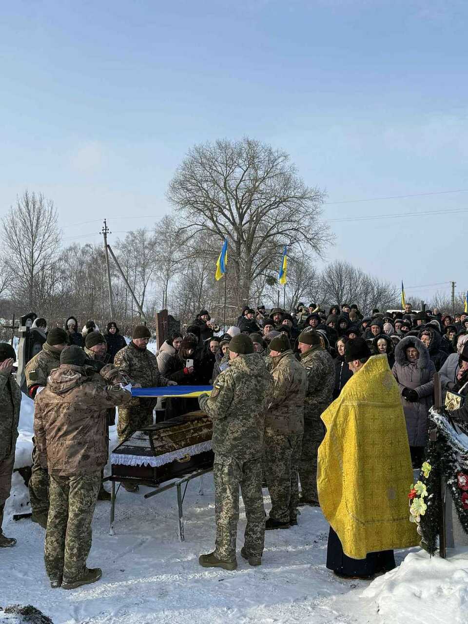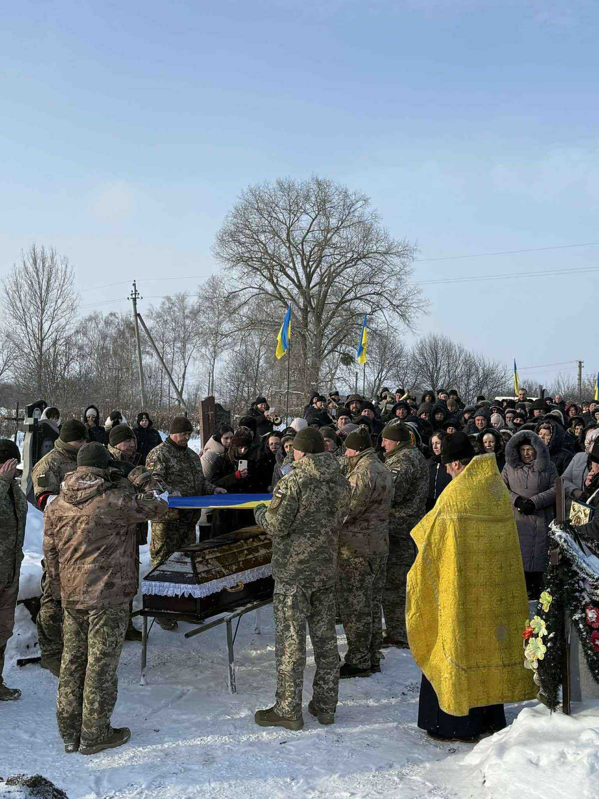 Провести захисника в останню путь прийшли рідні, близькі, побратими, представники місцевої влади, духовенства та небайдужі жителі громади.