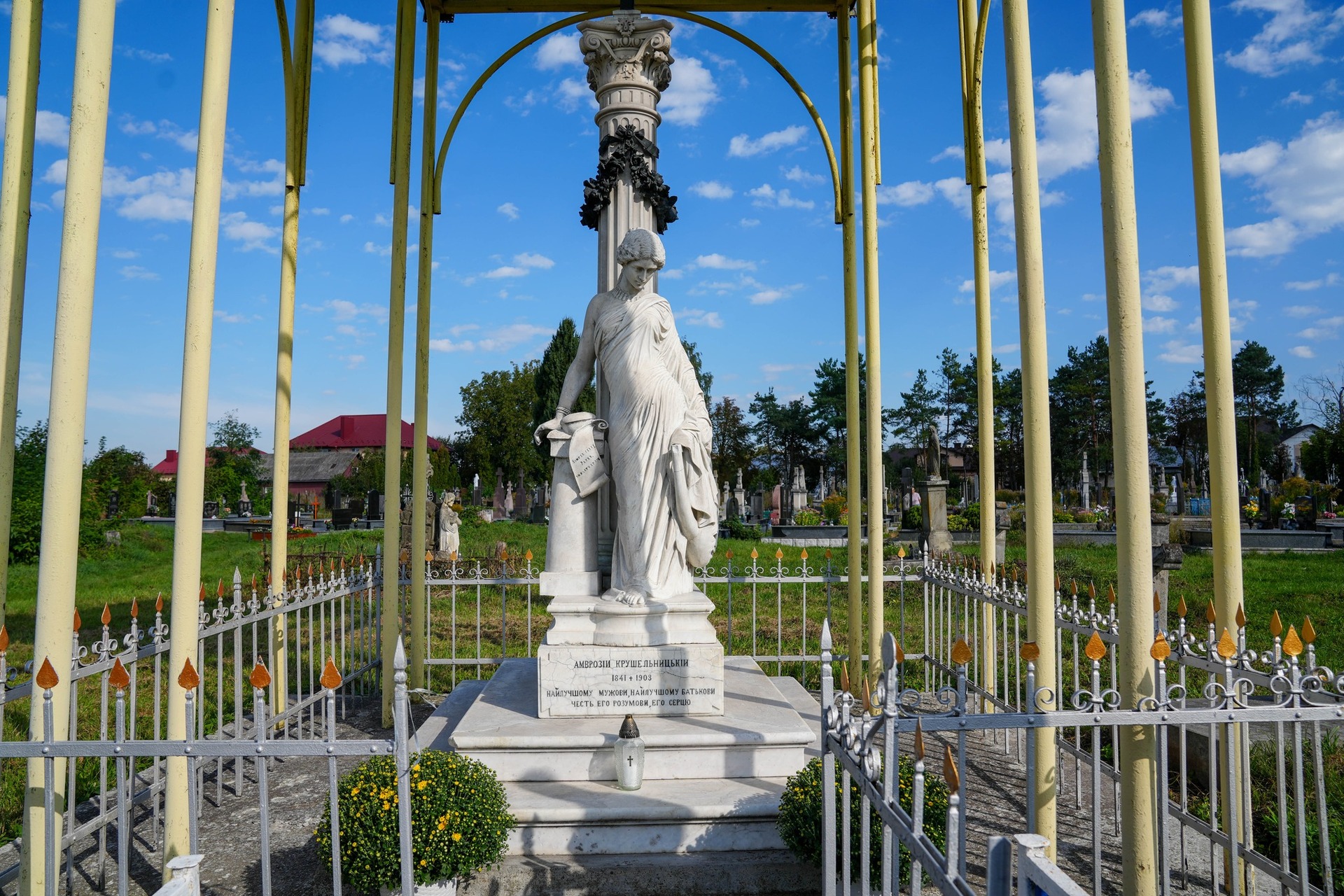 Першою зупинкою є місцеве кладовище, де похований отець Амвросій Крушельницький – батько Соломії. Високомистецький пам’ятник з італійського мармуру на його могилі встановлено стараннями доньки.