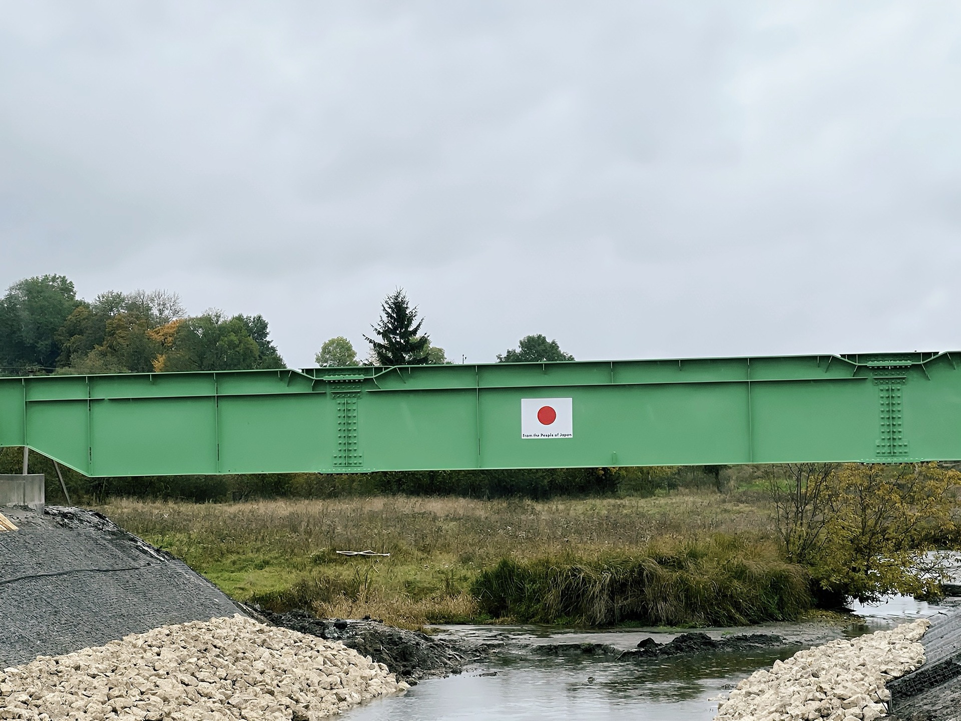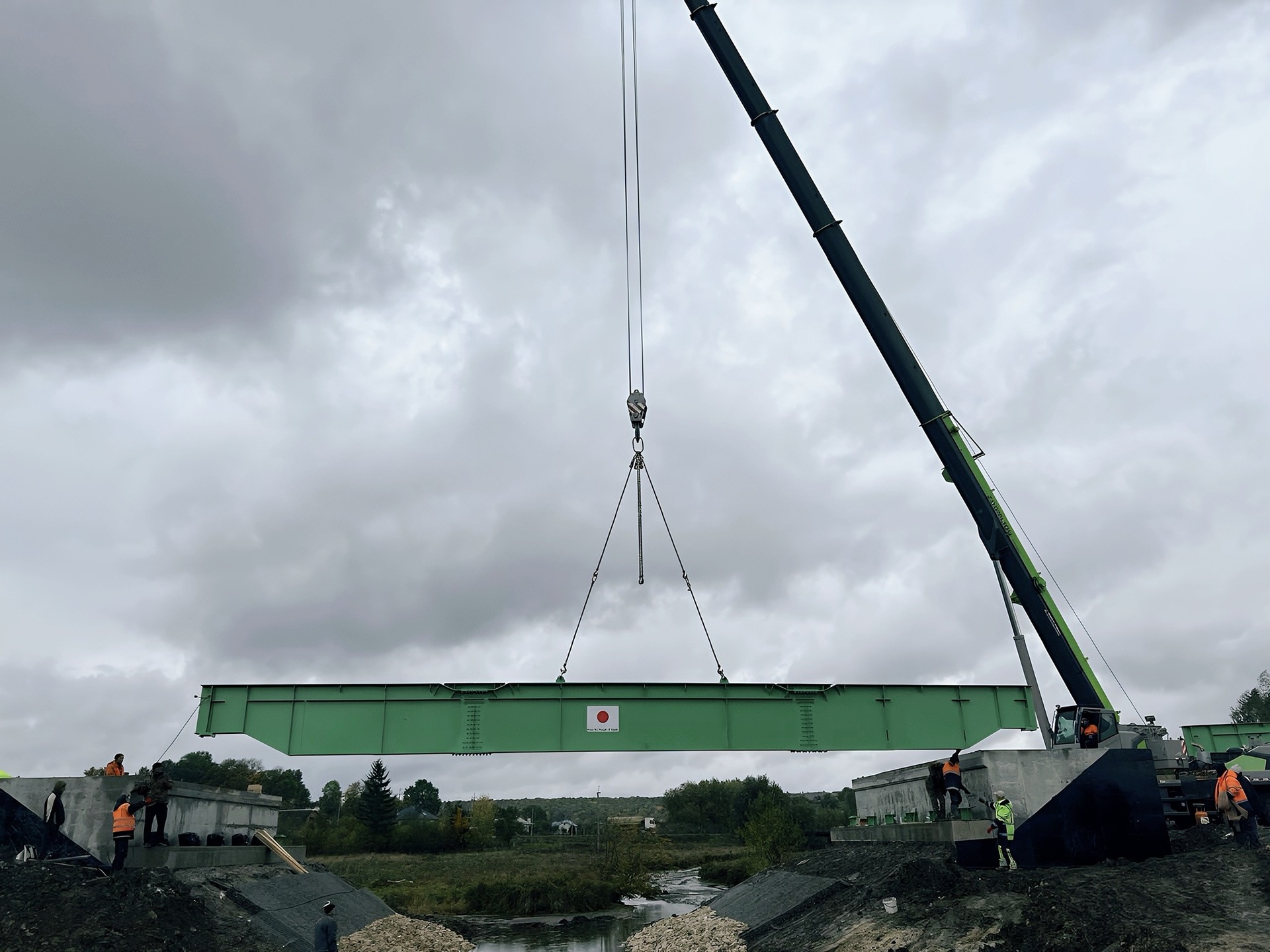 Металеві модульні конструкції, з яких монтується новий міст, надані на безоплатній основі Японським агентством міжнародного співробітництва (JICA) в рамках проєкту «Програма екстреного відновлення». Протяжність нової штучної споруди становитиме 20 метрів, а пропускна вантажоспроможність збільшиться до 100 тонн.