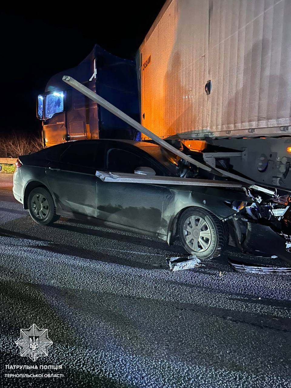 Аварія за участю вантажівки MAN та легкового автомобіля Ford сталася 10 листопада, близько 19 години на 25 км автодороги М-09 Тернопіль-Львів-Рава–Руська, повідомляють у пресслужбі Патрульної поліції Тернопільщини.