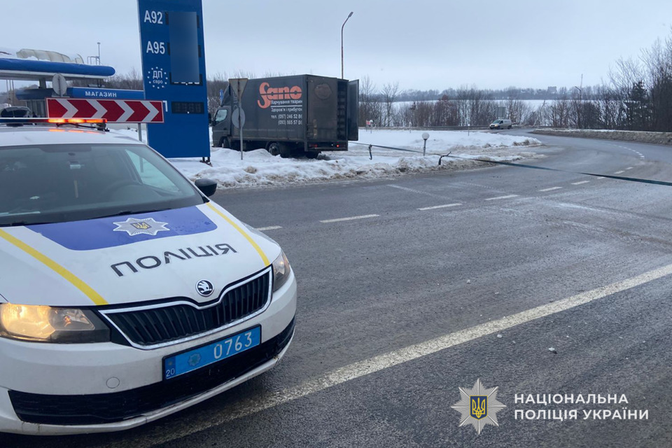 На місце виїжджали патрульні. За попередніми даними, близько 22:15 67-річний водій Mitsubishi Canter не впорався з керуванням і авто знесло з дороги. У результаті - фура з’їхала з проїжджої частини, переїхала через бордюр та виїхала на територію автозаправної станції, де врізалася в опору вуличного освітлення.