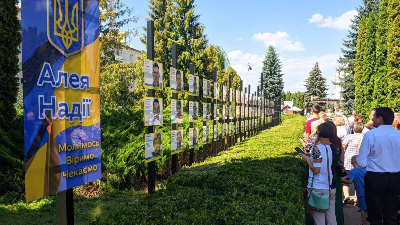 На стендах розміщено десятки світлин захисників – чоловіків, синів, братів, друзів, котрі стали на захист України та досі не повернулися. Для когось очікування триває місяцями, для когось – уже роками.