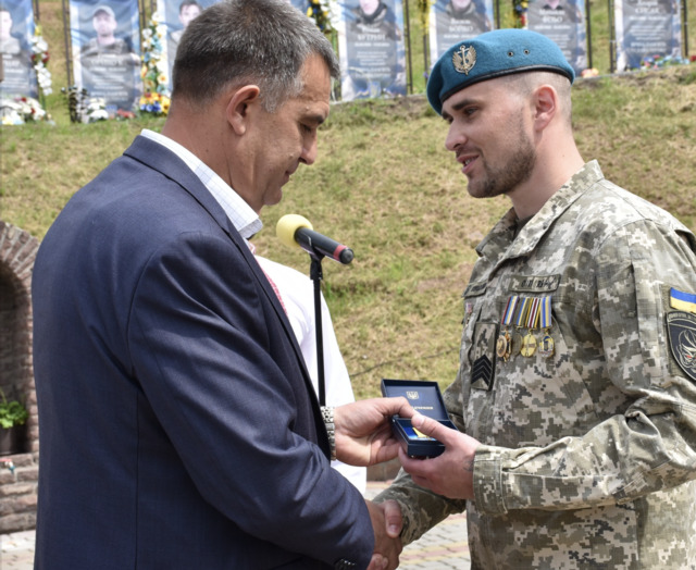 Також на заході морпіху Дмитру Галюку з Бариша, який нещодавно повернувся з полону, вручено відзнаку Бучацького міського голови «За честь і відвагу».