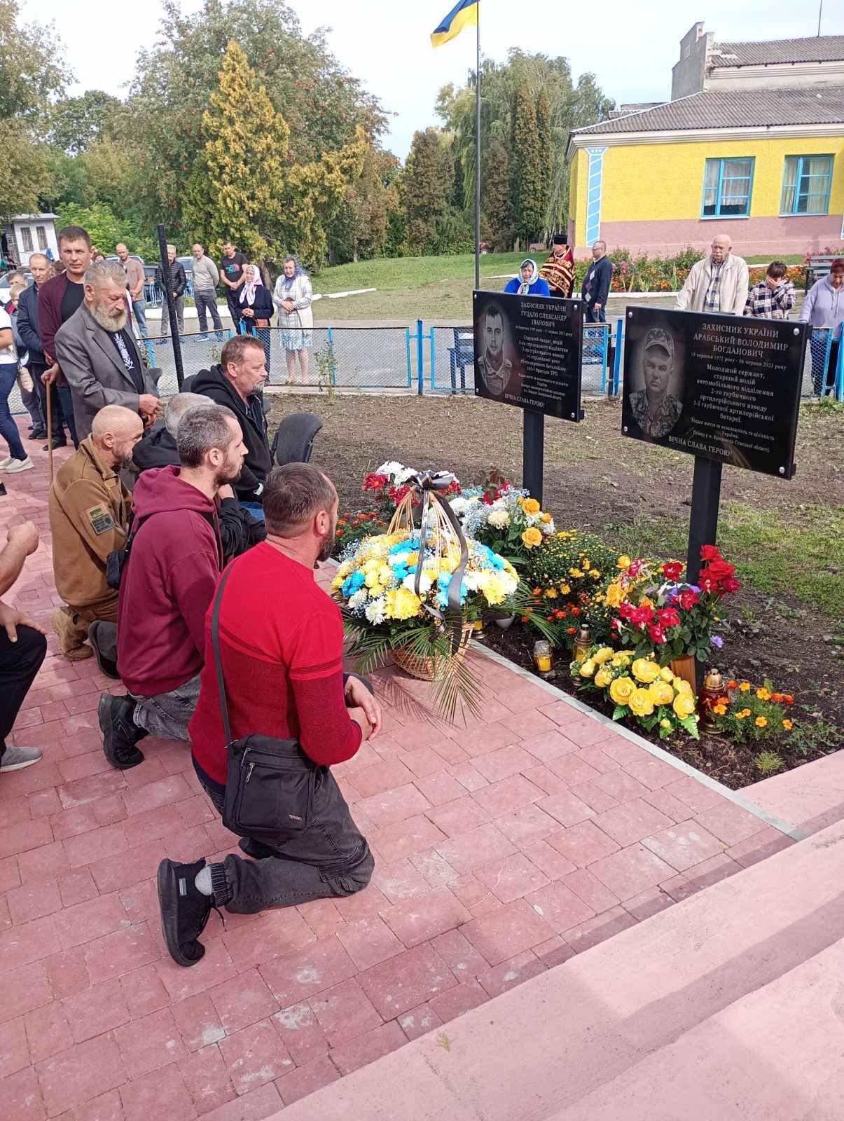 Урочисте відкриття меморіальних дощок загиблим Героям – Володимиру Арабському та Олександру Гуцалу відбулося в селі Великі Кусківці Борсуківської громади 14 вересня. Про це повідомили у пресслужбі громади.