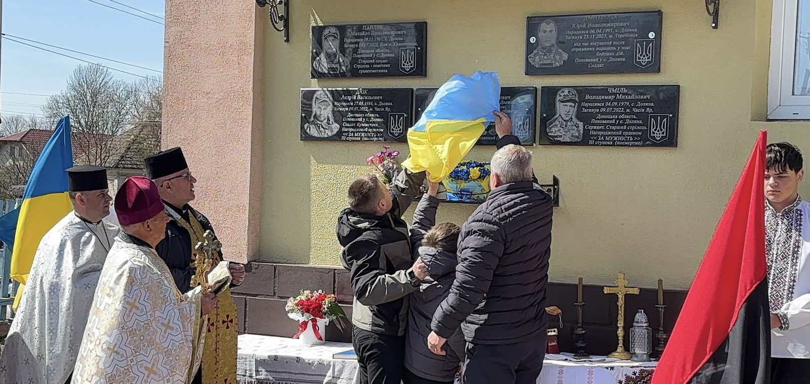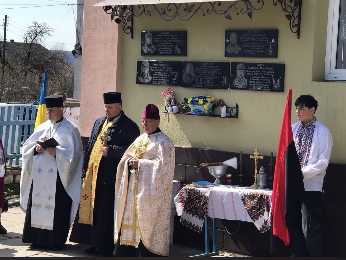 Під час відкриття дошку освятили місцеві священнослужителі та відслужили панахиду за упокій душі захисника.