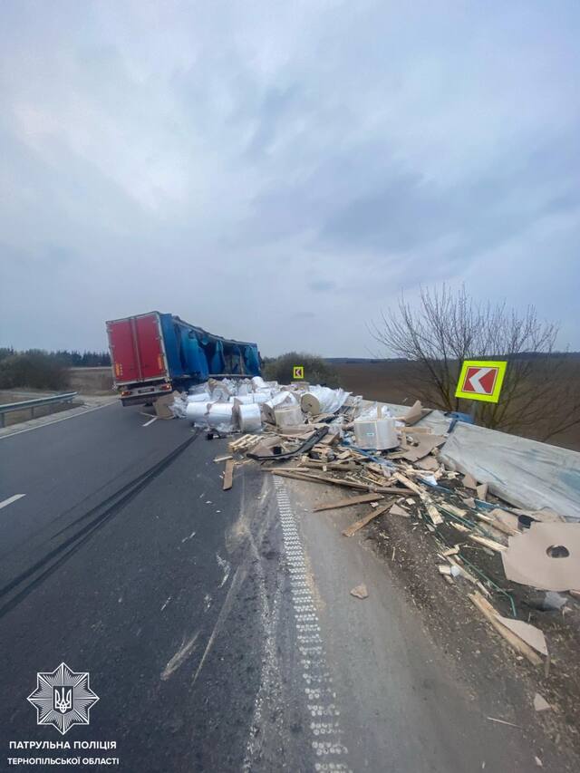 Внаслідок аварії вантаж розкинувся на проїжджу частину дороги