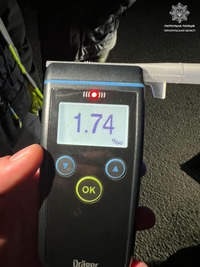 Так, днями під час патрулювання інспектори зупинили за порушення правил дорожнього руху автомобіль Skoda. Спілкуючись з водієм вони виявили в нього явні ознаки алкогольного сп'яніння та запропонували чоловікові пройти огляд на стан сп'яніння на місці зупинки транспортного засобу за допомогою алкотесту Драгер. Водій погодився. Результат огляду виявив 1,74 проміле алкоголю в крові громадянина.