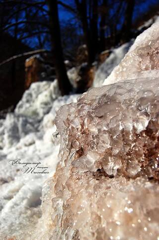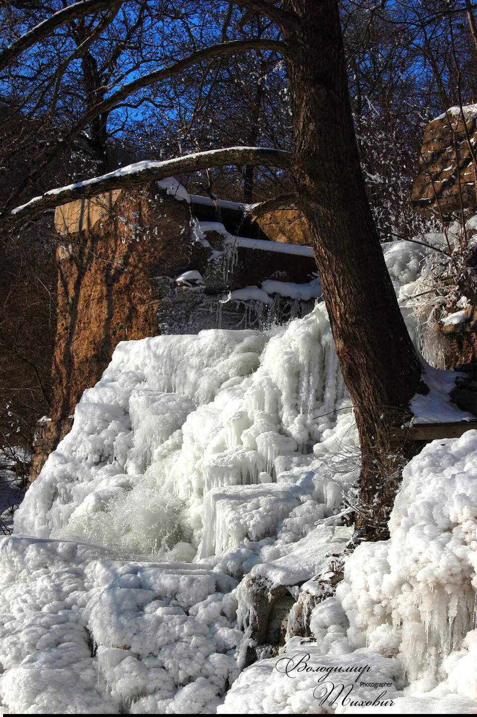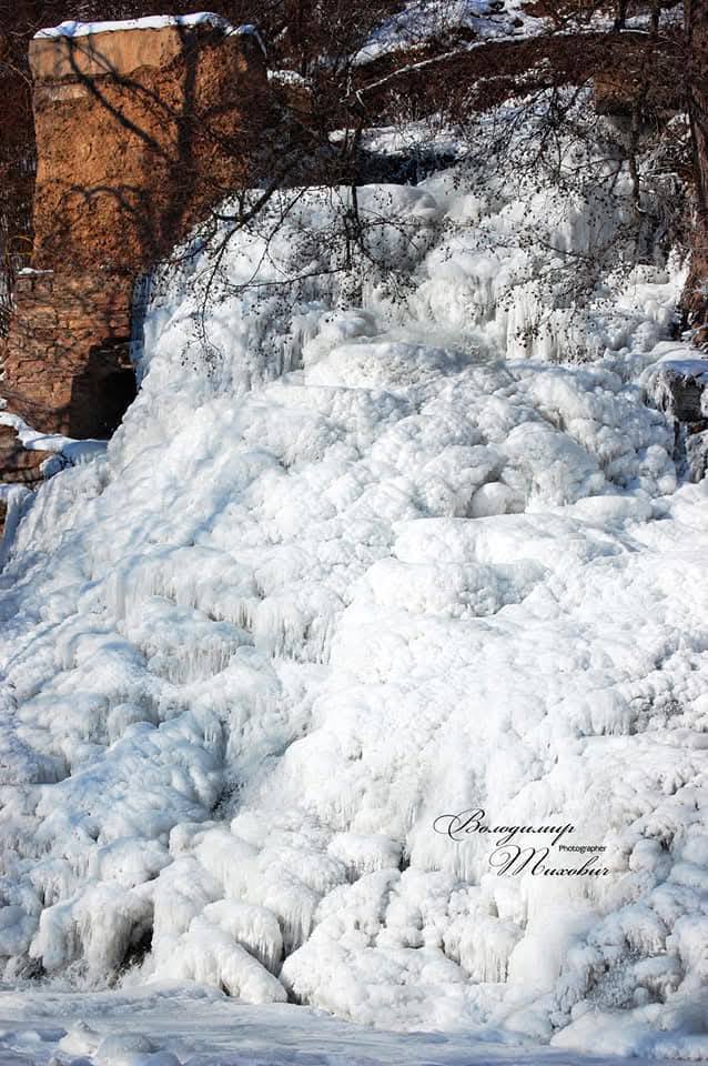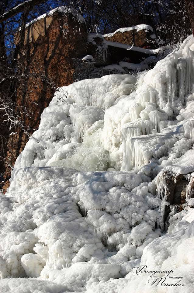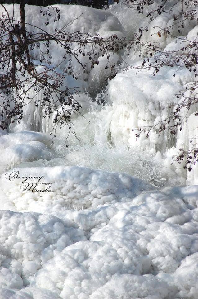 Світлини замерзлого Джуринського водоспаду опублікував на своїй фейсбук-сторінці фотограф Володимир Тихович.