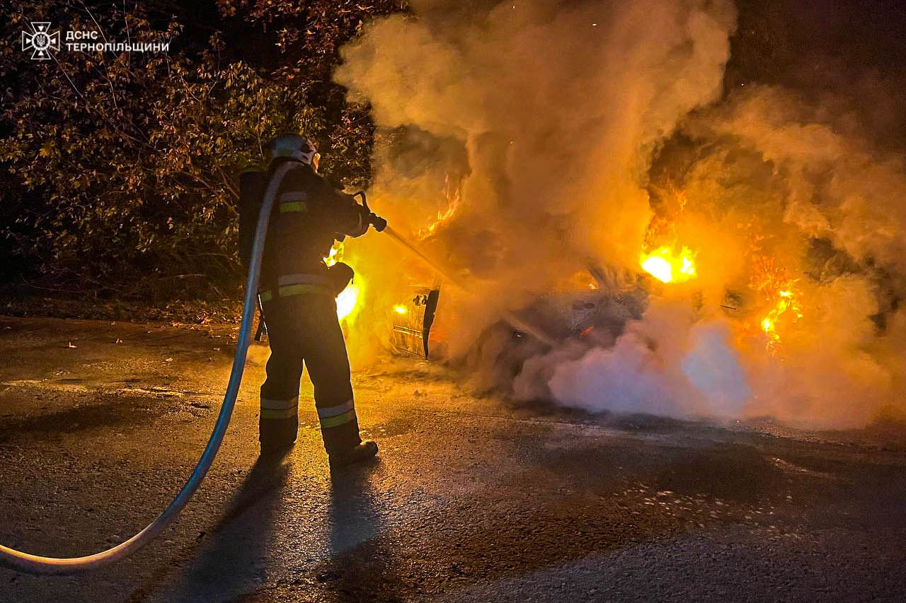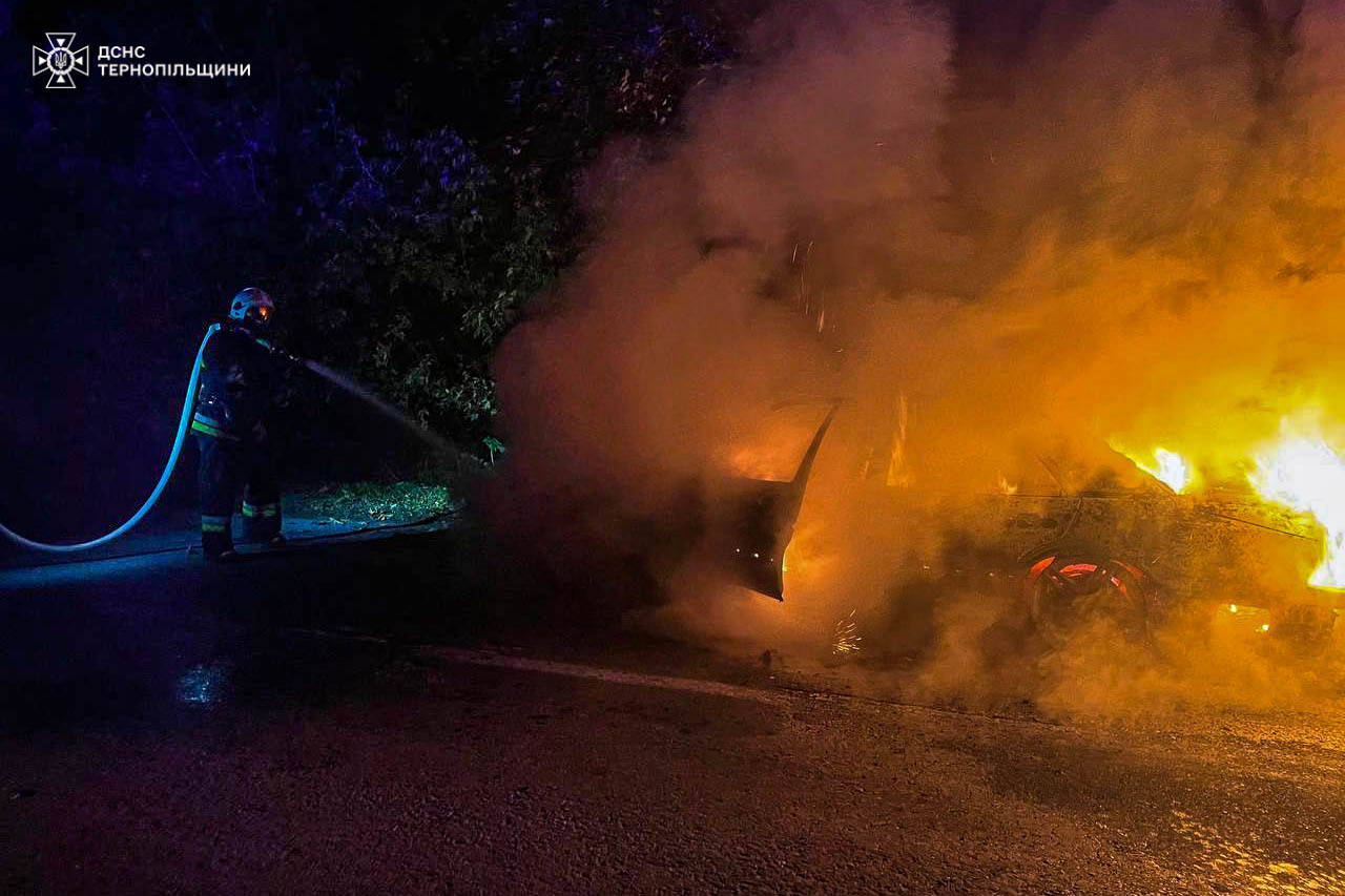 О 03:23 загорівся легковий автомобіль. Вогонь охопив площу 6 кв. м і повністю знищив транспортний засіб.
