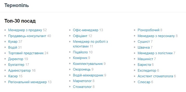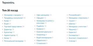 Найпопулярнішими стали такі посади: