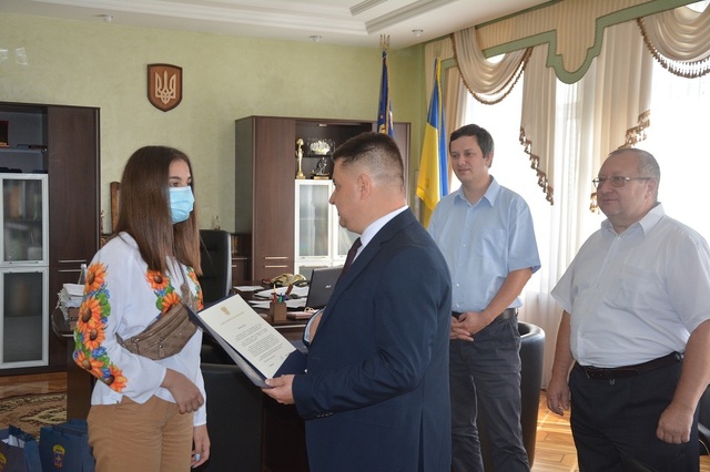 – Вітаю вас із серйозним досягненням – на «відмінно» складеними тестами ЗНО, – каже Віктор Овчарук. – Нагадаю, премію, яку ви отримаєте, започаткувала Тернопільська обласна рада для підтримки інтелектуально обдарованих учнів, студентів закладів освіти краю, сприяння їхнім потенційним можливостям. Це – нагорода від громади області за ваші знання, наснагу, бажання впевнено торувати шлях до окресленої мети і досягати успіху. Ви – гордість нашого краю!