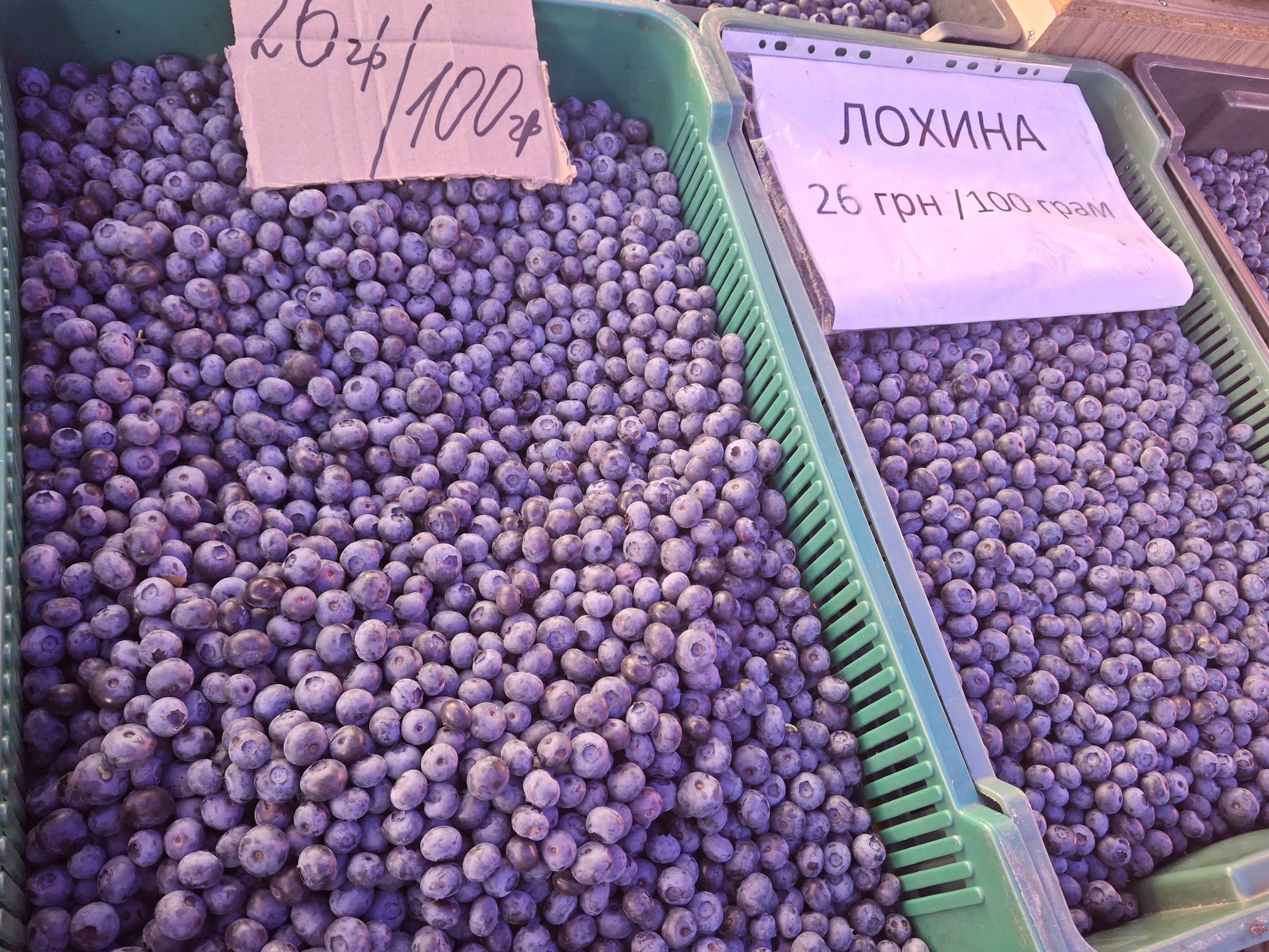 У мене волинська лохина — 26 гривень за сто грам. Ще три дні тому була по 300 гривень за кілограм, учора — 280, а сьогодні вже 260. Але дешевше не буде, — каже пані Ольга, яка торгує на центральному ринку. — Цього року врожаю менше: весна була холодна, кущі пізно розпустились. І ціни вищі, ніж торік. Але люди все одно купують, бо ягода свіжа й солодка.