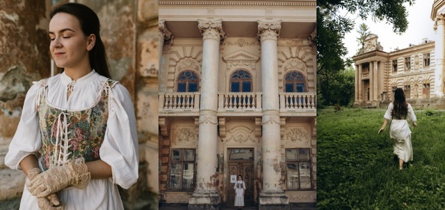 «Навіть у такому стані він прекрасний»: співачка з Тернопільщини знялася у фотосесії біля палацу, який потребує термінової реставрації (фото)