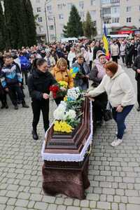 На площі Героїв Майдану у Шумську військові урочисто занесли труну під супровід сакральної мелодії «Плине кача». Священники відслужили панахиду та разом із присутніми помолилися за упокій душі Героя. Траурний кортеж із тілом захисника рушив до рідного села, шлях до якого був встелений квітами.