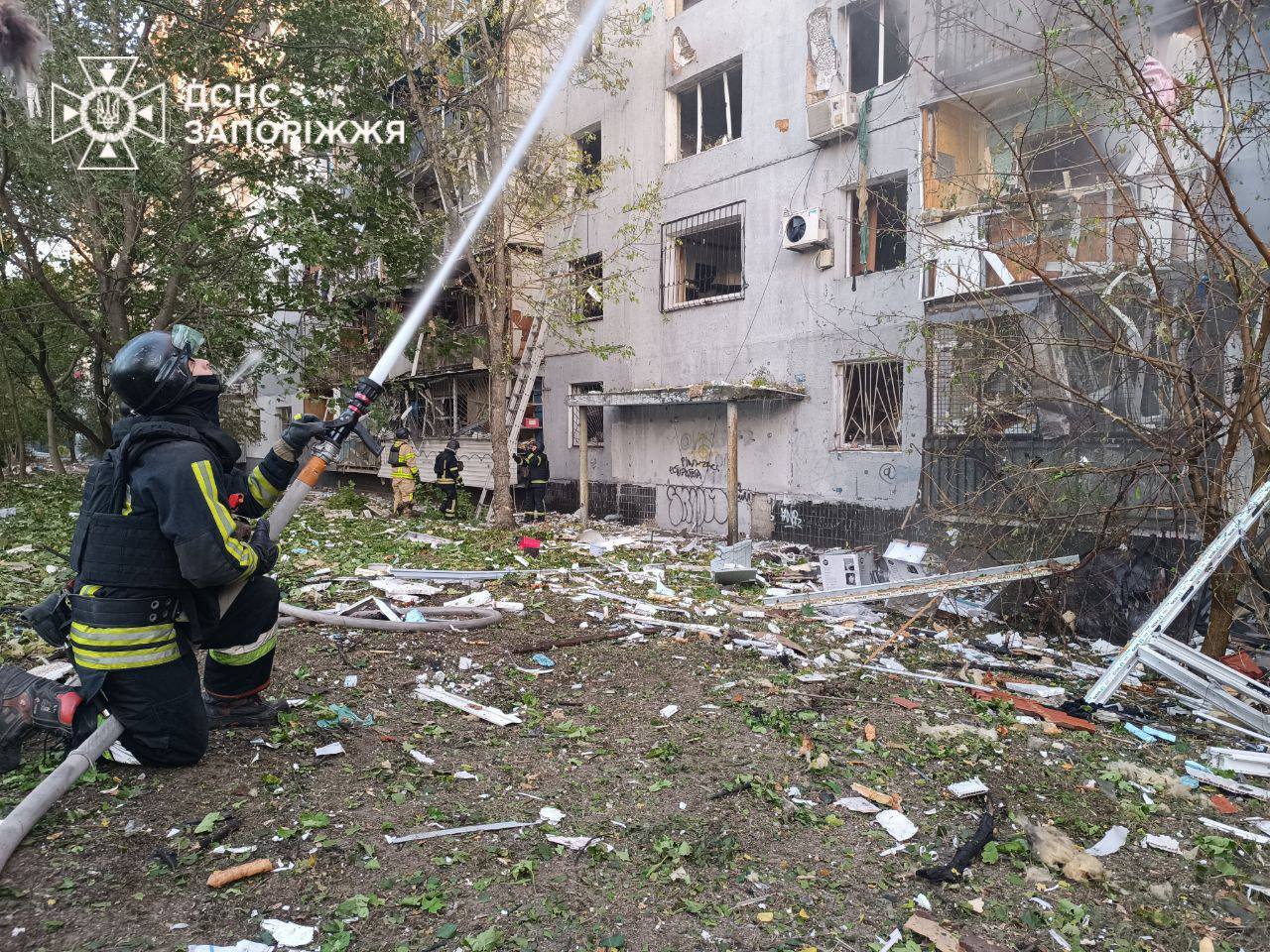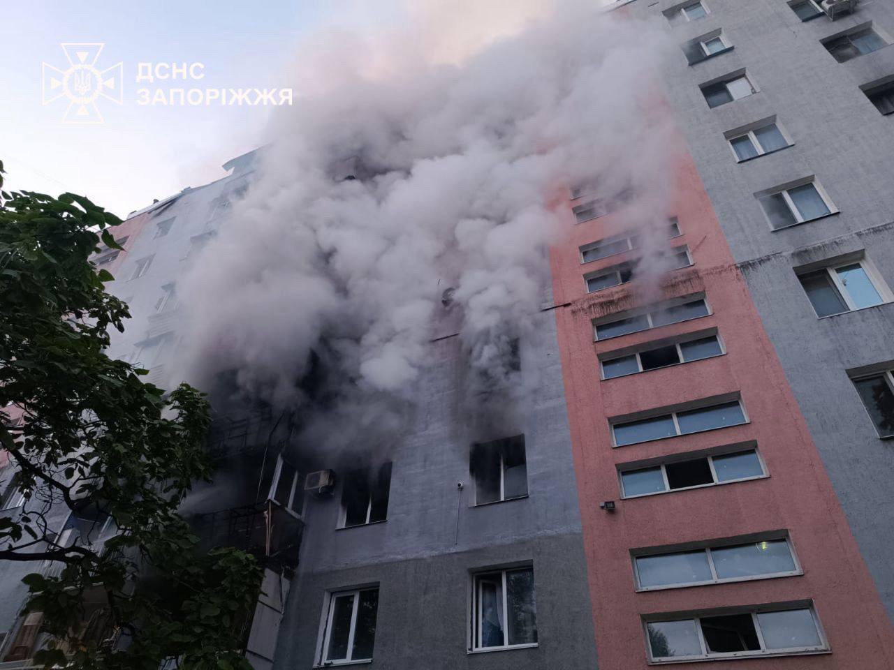 Як повідомляють у пресслужбі ДСНС, 21 людина постраждала від ранкового російського обстрілу Запоріжжя, серед них — дві дитини. Ракета влучила поруч з житловим дев'ятиповерховим будинком, внаслідок чого сталося займанням з другого по пʼятий поверхи в одному під’їзді та з восьмого по девʼятий в іншому.