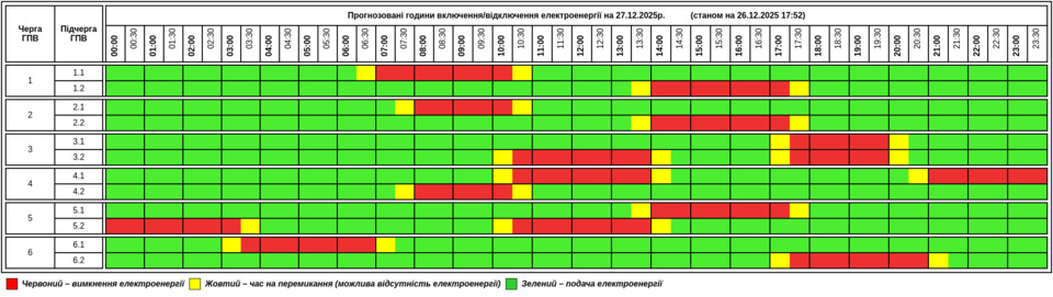 Публікуємо графік, який відомий станом на вечір 26 грудня