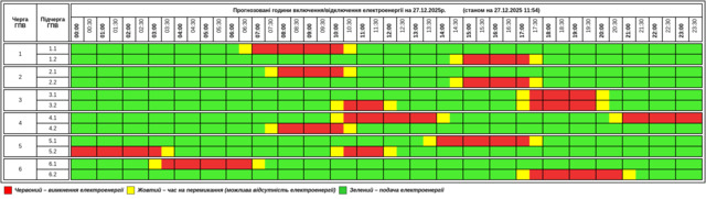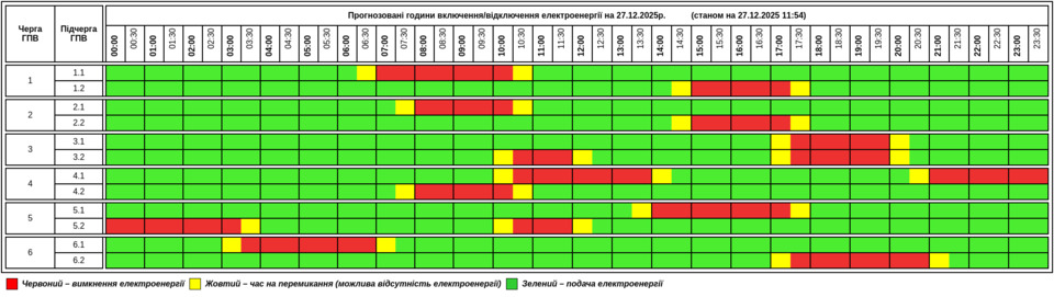 Публікуємо графік, який відомий станом на 11:54 годину 27 грудня