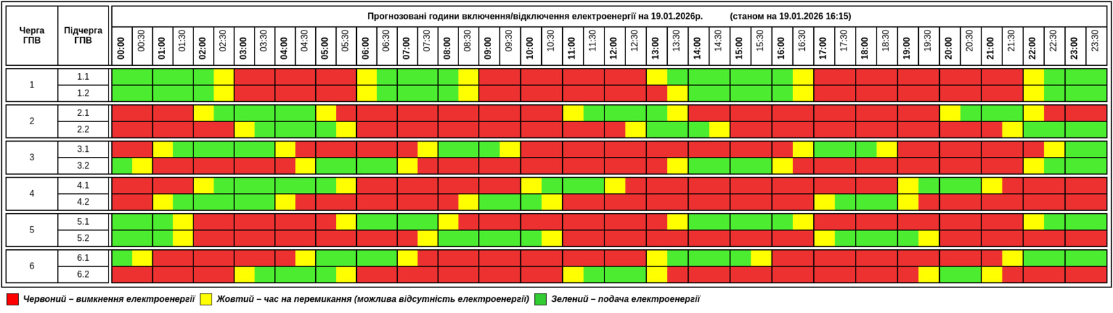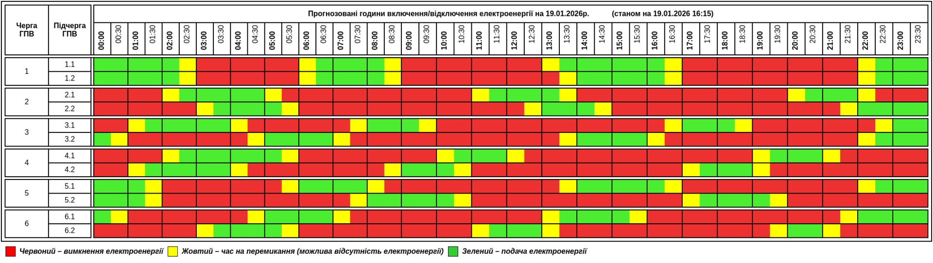 Публікуємо графік, який відомий станом на 16:15: