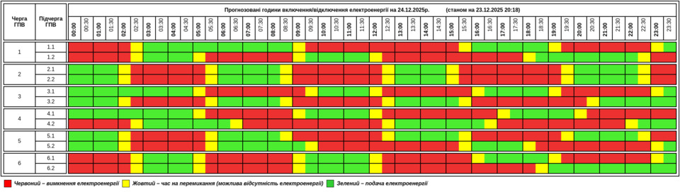 Публікуємо графік, який відомий станом на вечір 23 грудня: