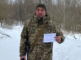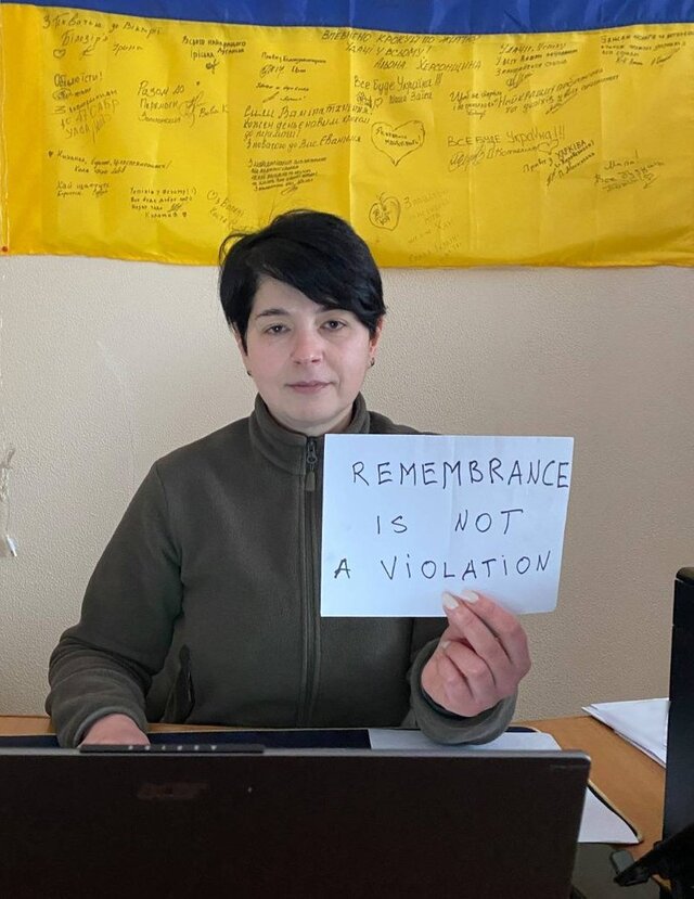 На фотографіях військові тримають білий аркуш паперу з написом Remembrance Is Not A Violation: «Пам'ять — не є порушенням».