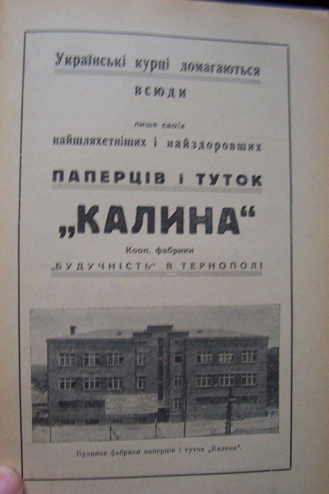 1925 року фабрика туток і папірців на вул. Довгій (тепер Вояків Дивізії Галичина,21) отримала назву «Калина». Добротний товар і порівняно низькі ціни сприяли співпраці зі «Союзом Кооперативів». У часи безробіття фабрика забезпечувхта роботою майже сто осіб.