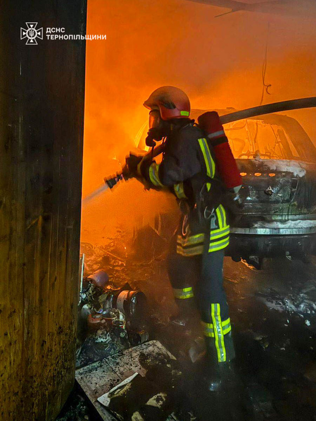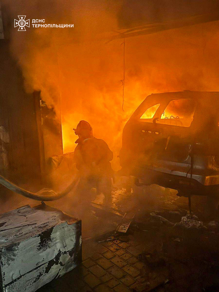 20:53, Збараж – пожежа приватної господарської будівлі (30 м²). Вогнем знищено гараж та автомобіль Honda CR-V.