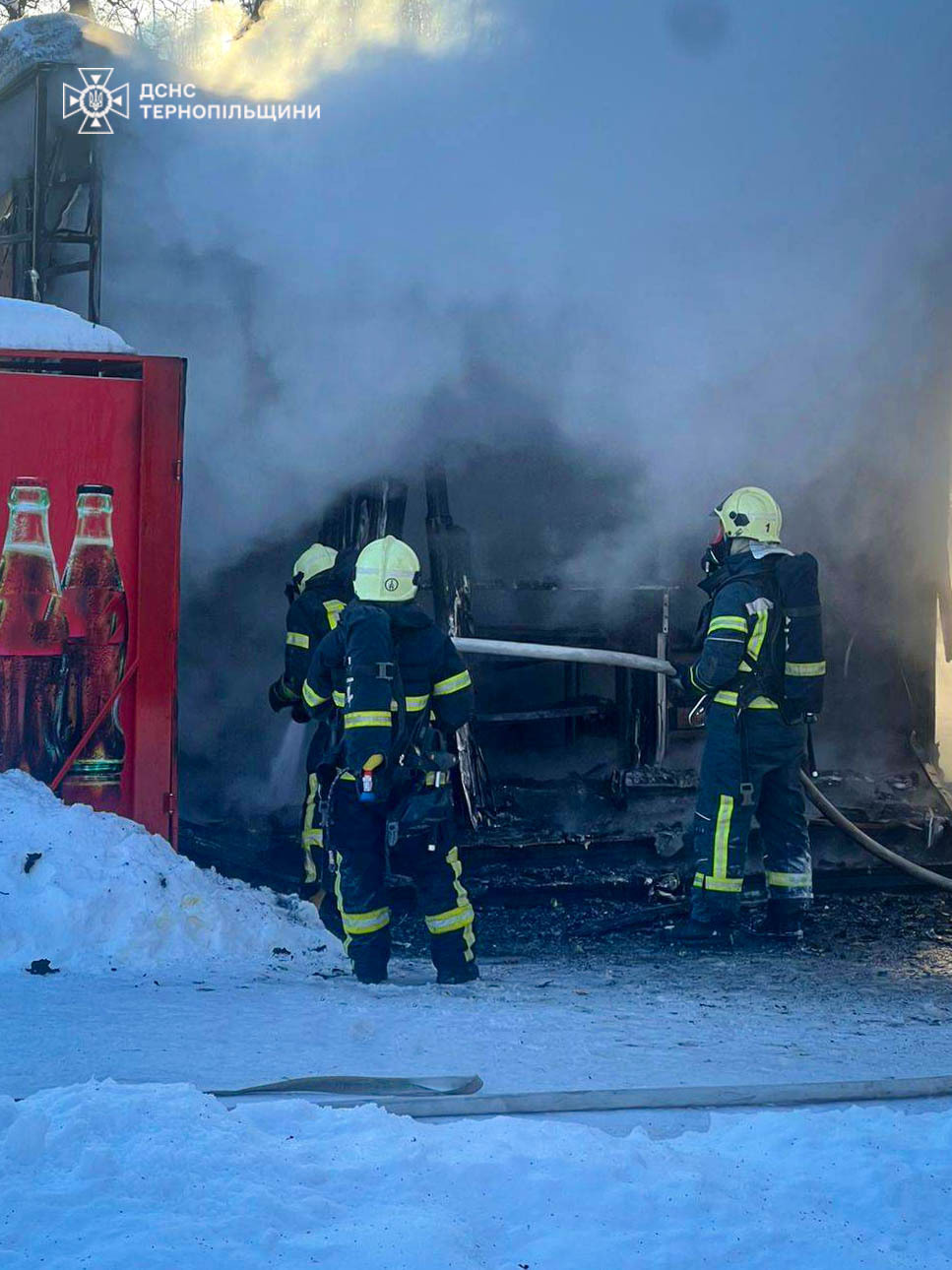 15:17 – Тернопіль, вул. Білецька – пожежа кіоску швидкого харчування площею 30 м². Споруду знищено вогнем.