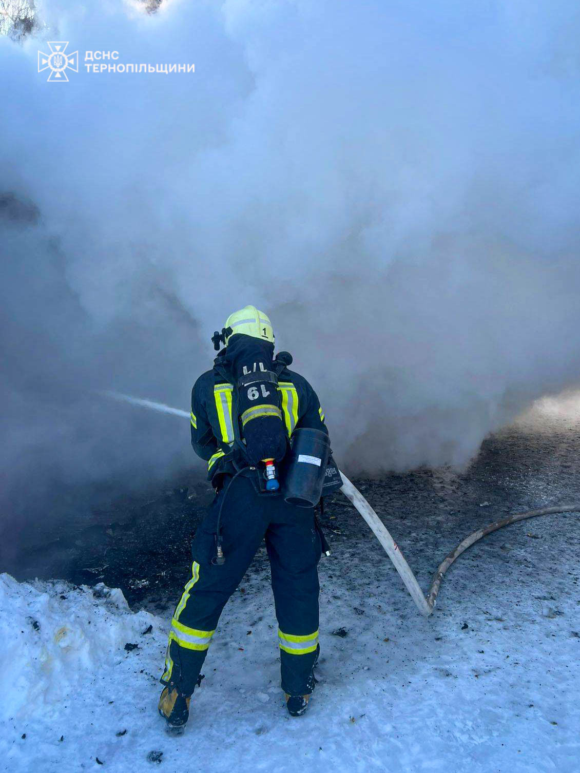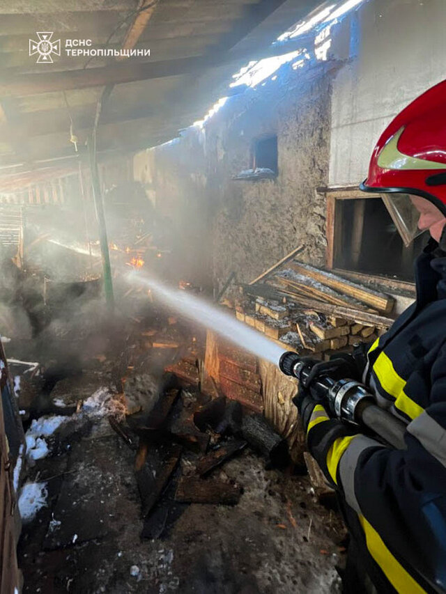 О 13:02 – пожежа приватної господарської будівлі площею 10 м² у селищі Залізці Тернопільського району. Знищено дрова, пошкоджено стіни.