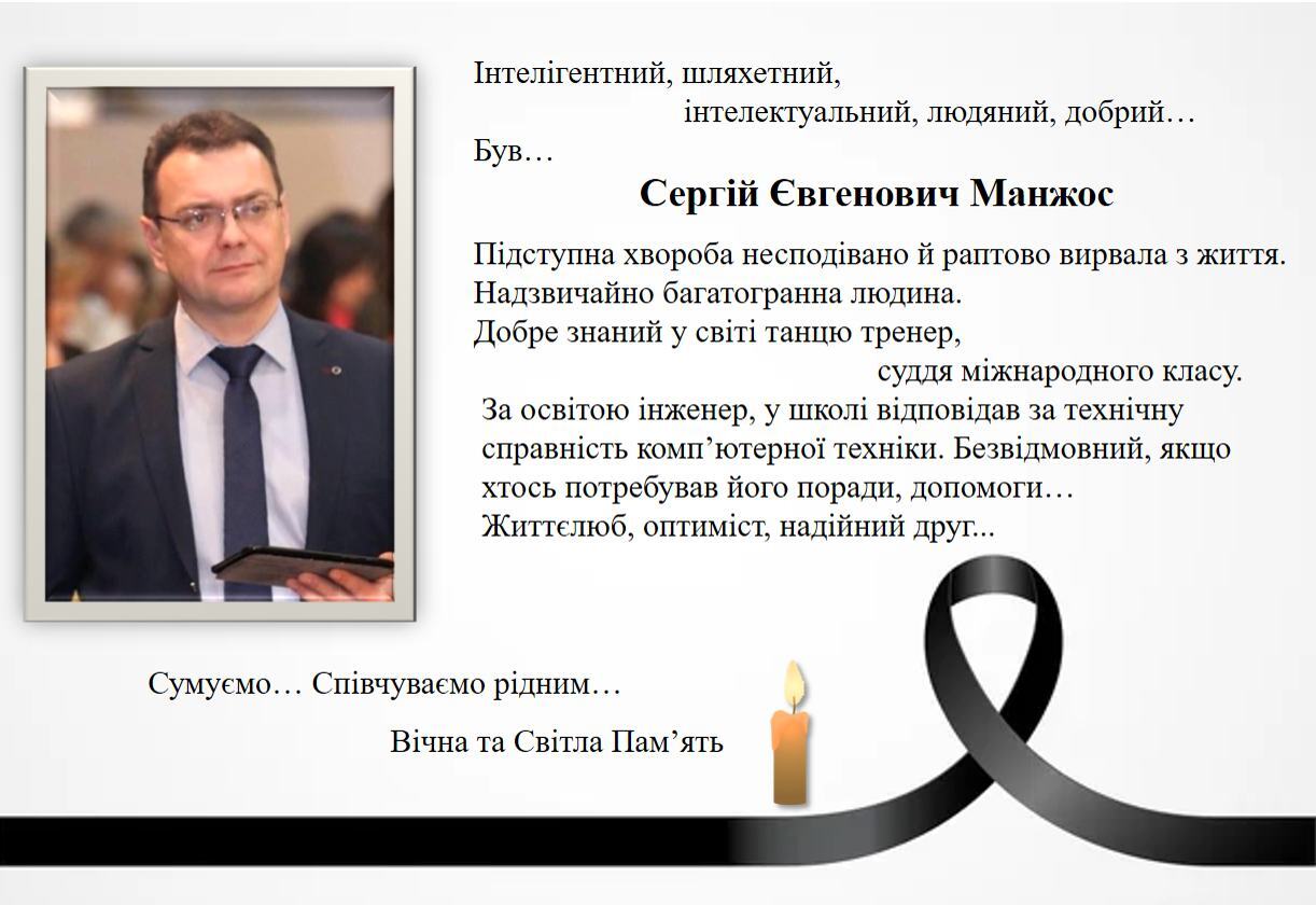 Сумну новину про смерть Сергія Манжоса повідомили 19 квітня на сторінці тернопільської школи №11 у фейсбуці.