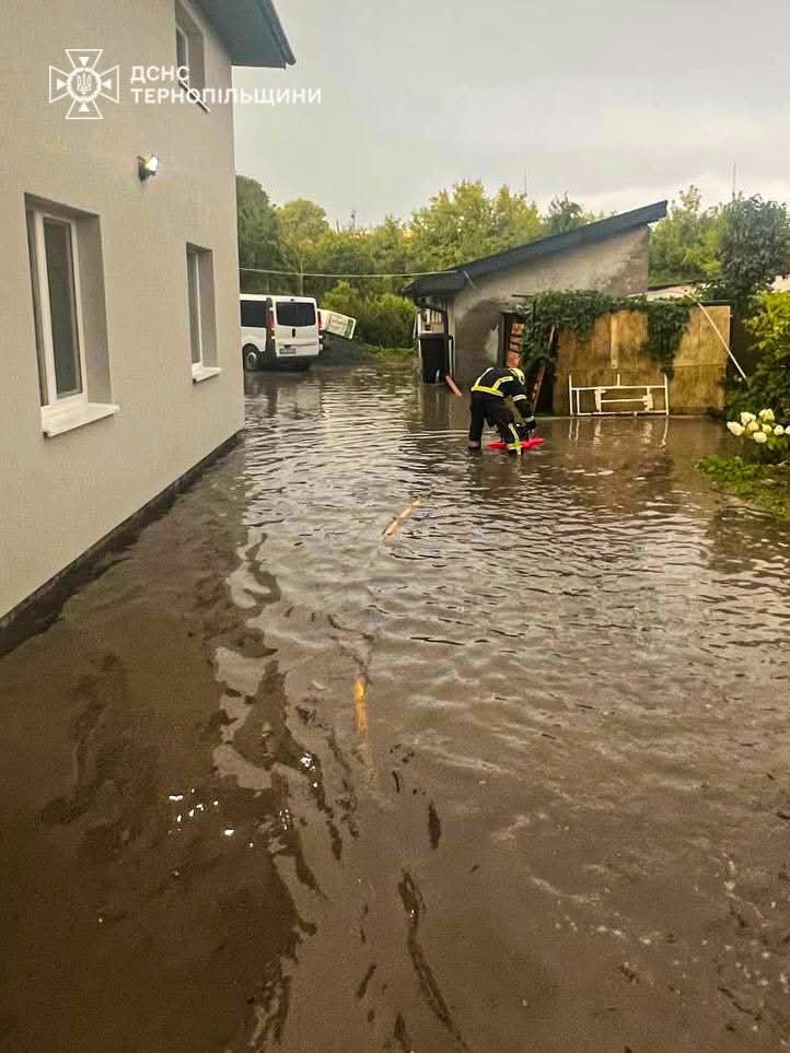 На вулицях Микулинецька, 13 та Гайова бічна, 5 відбулося підтоплення двох приватних житлових будинків. Для відкачування води залучено чергові відділення 26-ї та 1-ї державних пожежно-рятувальних частин.