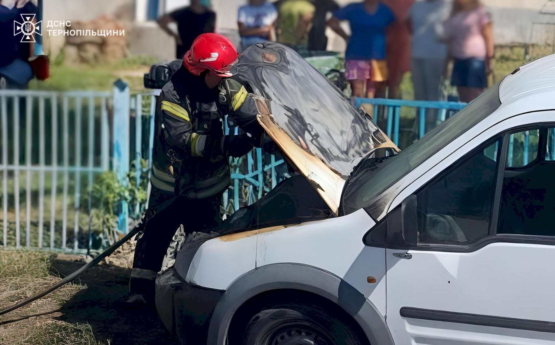 Пожежа легкового автомобіля Ford Transit Connect біля ресторану в Струсові сталася 14 серпня, повідомляють у пресслужбі ДСНС Тернопільщини.