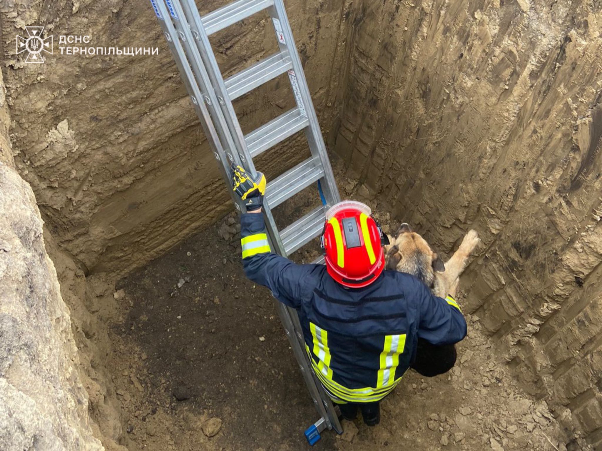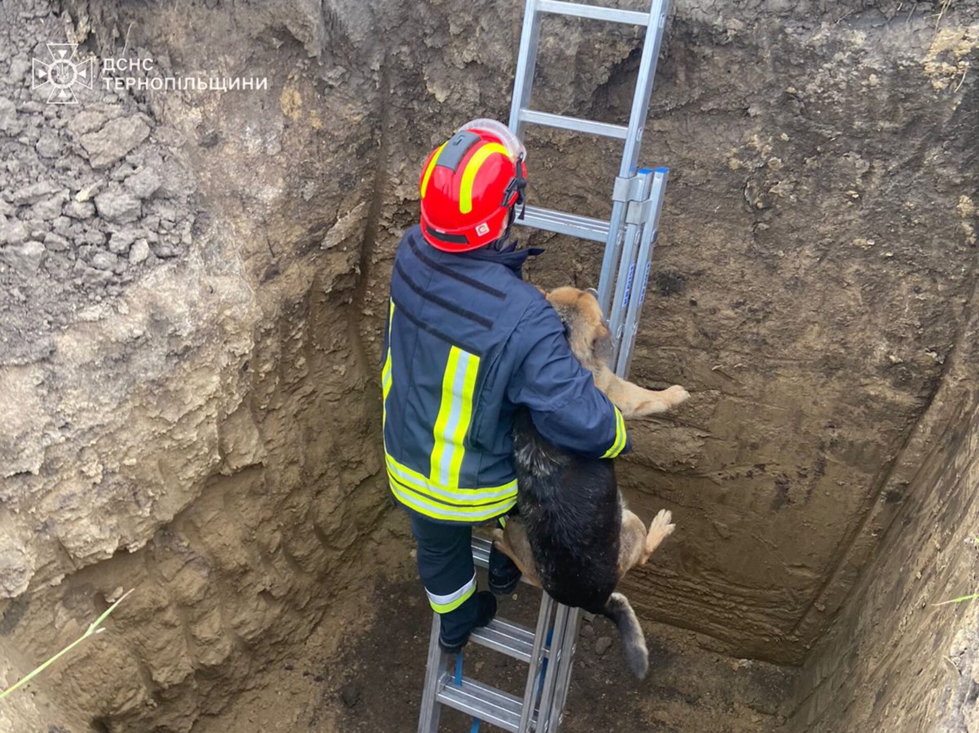 Уранці 9 червня у селі Великі Гаї Тернопільського району рятувальники допомогли собаці, яка впала в яму глибиною близько трьох метрів на території будівництва. Про це повідомили у пресслужбі ДСНС України у Тернопільській області.