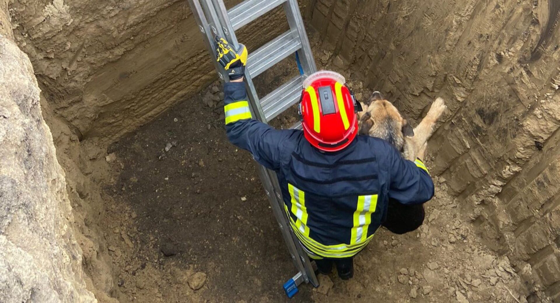 О 07:30 до Служби порятунку надійшло повідомлення про те, що у селі Великі Гаї собака впала в яму для септика на території приватного будівництва. Глибина котловану становила близько трьох метрів, тварина не могла вибратися самостійно.