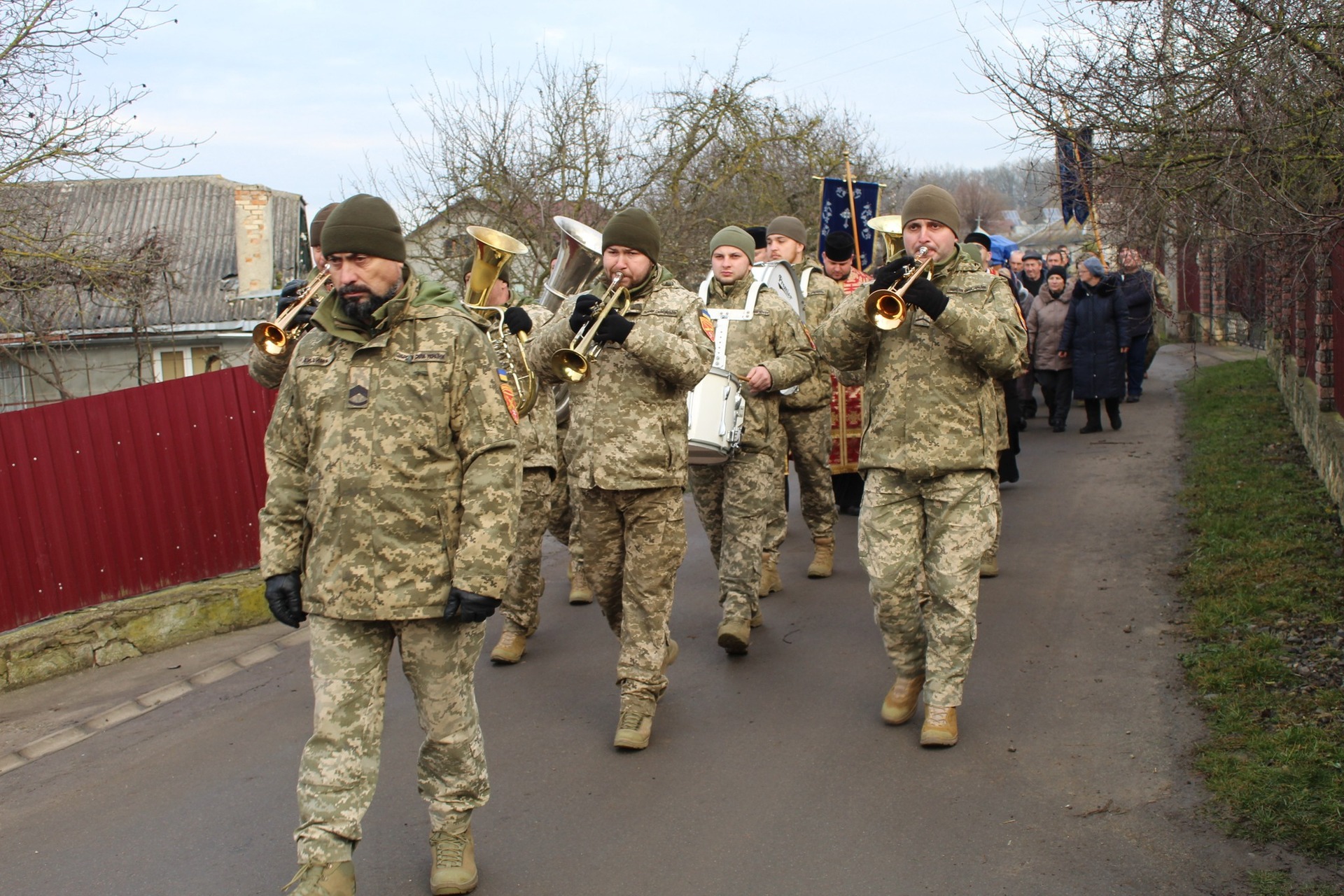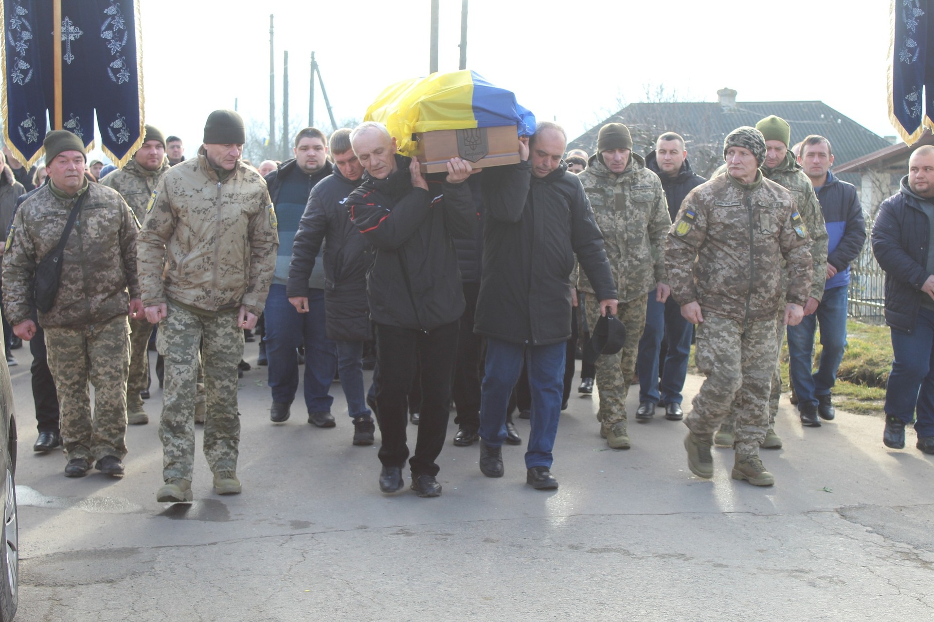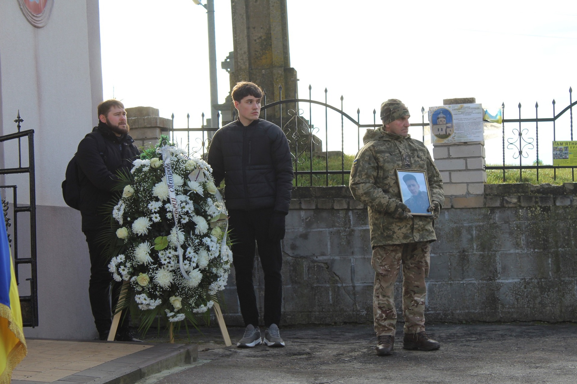 Односельці, друзі та сусіди, йдучи у процесії до храму, несли жовто-блакитні букети і згадували життєвий шлях воїна.